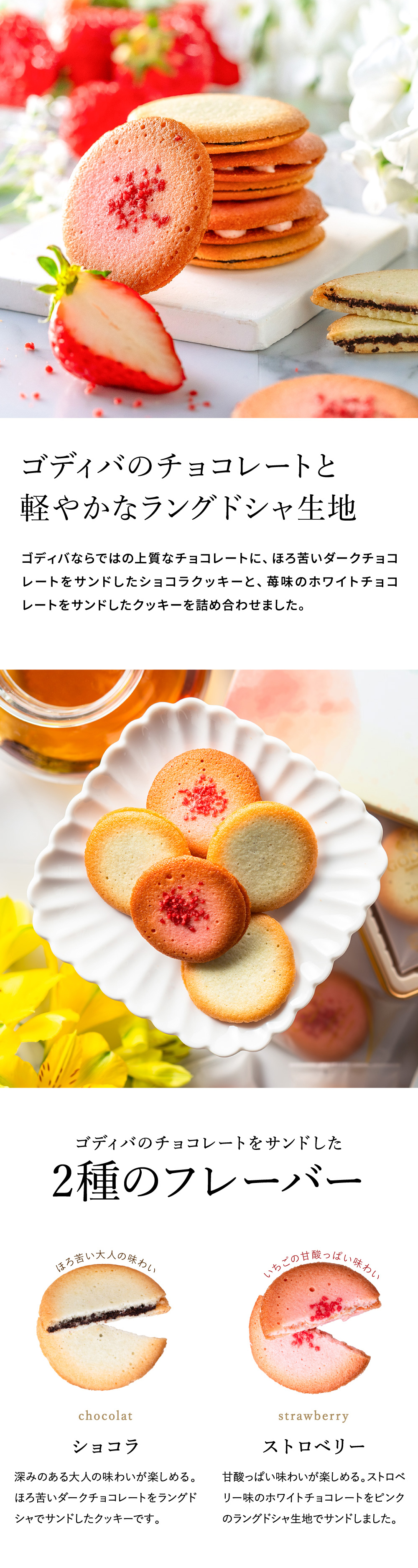 ベルギーを代表する高級チョコレート「ゴディバ」が贈る、2種のこだわりクッキーの詰め合わせ。チョコレートの味わいを大切にしたゴディバならではのクッキーです。