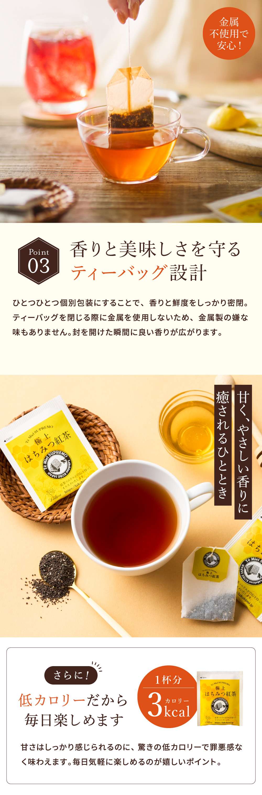 ●原材料:紅茶、はちみつパウダー(粉末はちみつ)/香料、甘味料(アスパルテーム(L-フェニルアラニン化合物を含む))