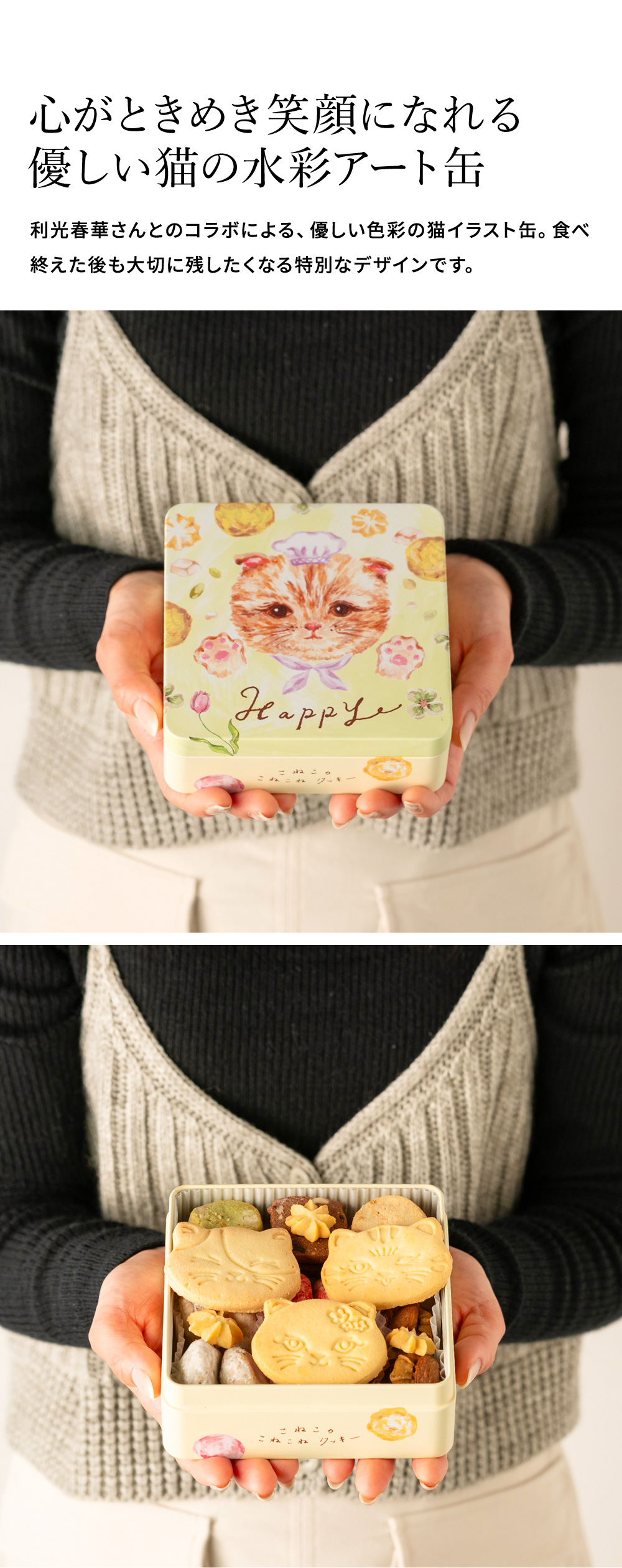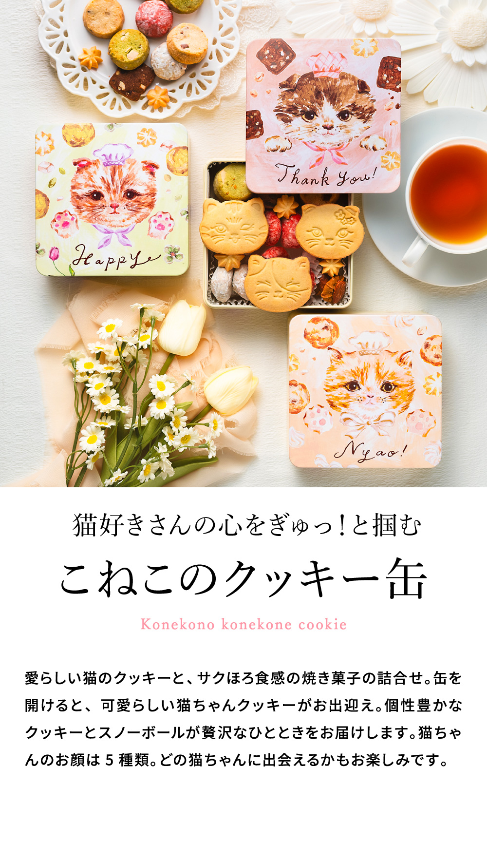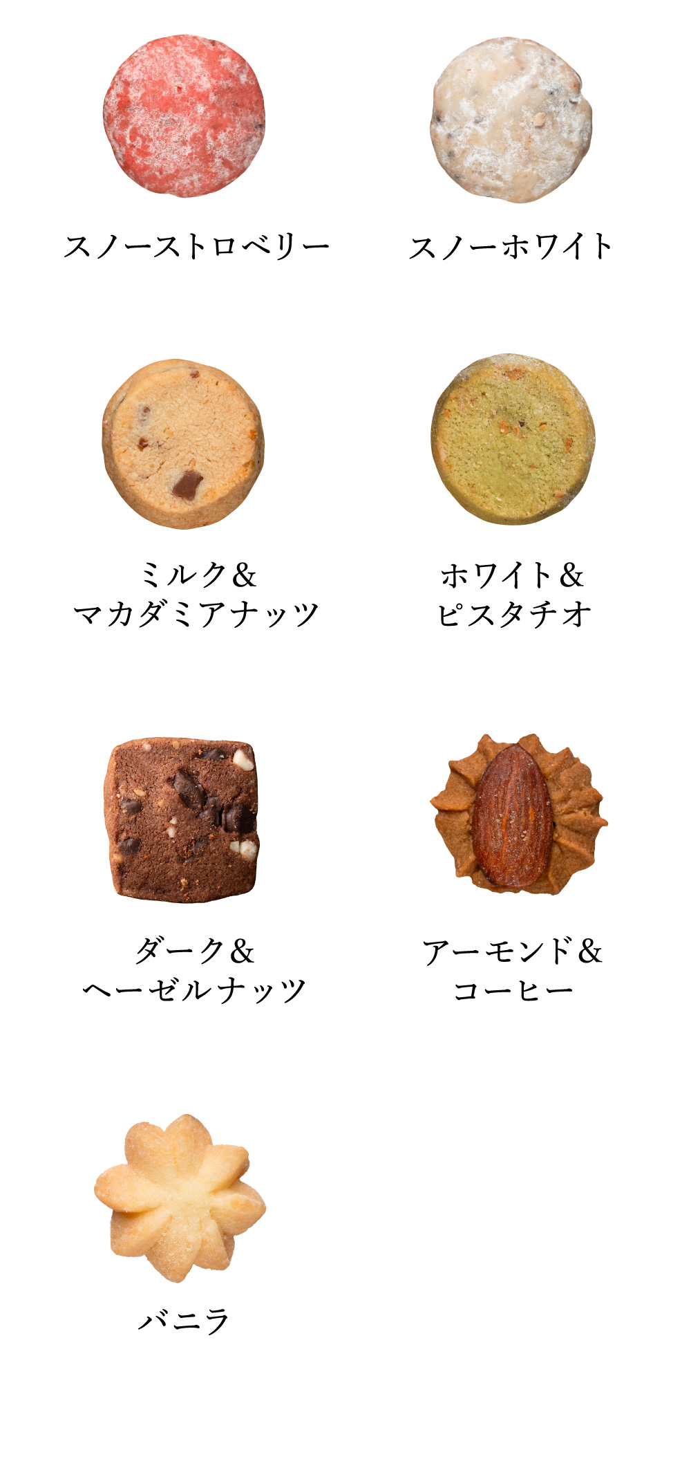 ●内容量:クッキー×27(バター×3、バニラ×3、ミルク&マカダミアナッツ×3、ダーク&ヘーゼルナッツ×3、ホワイト&ピスタチオ×3、アーモンド&コーヒー×4、スノーホワイト×4、スノーストロベリー×4)※クッキーのこねこの顏はランダムとなります。