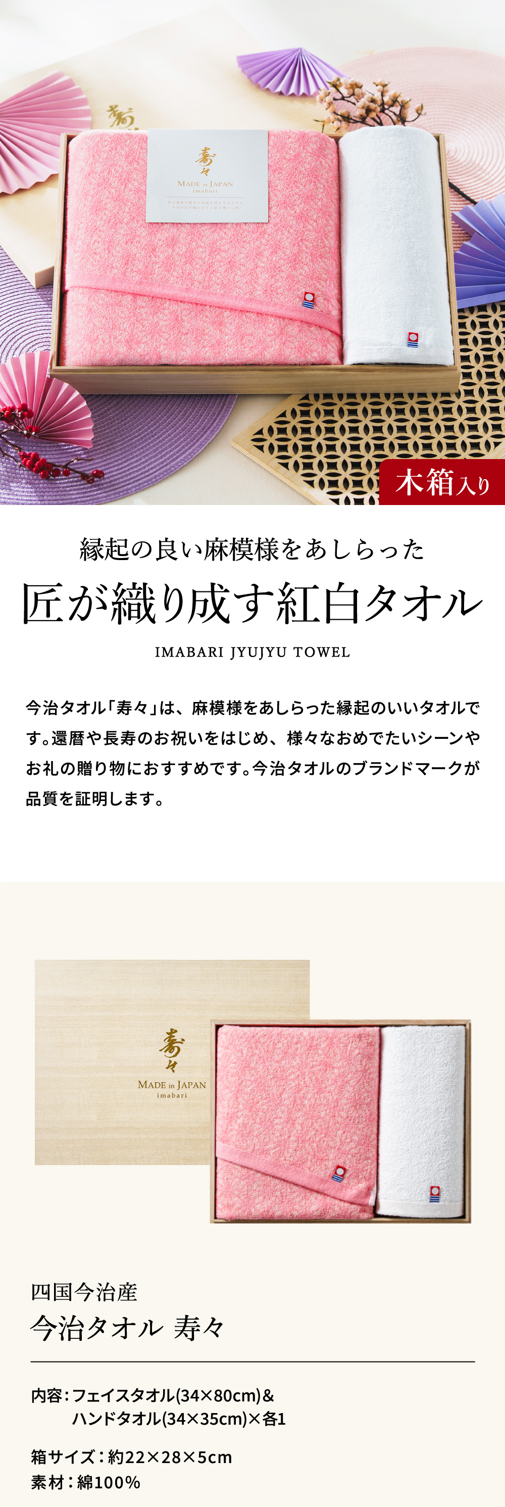 寿々(じゅじゅ) 木箱入り紅白タオル(今治タオル)