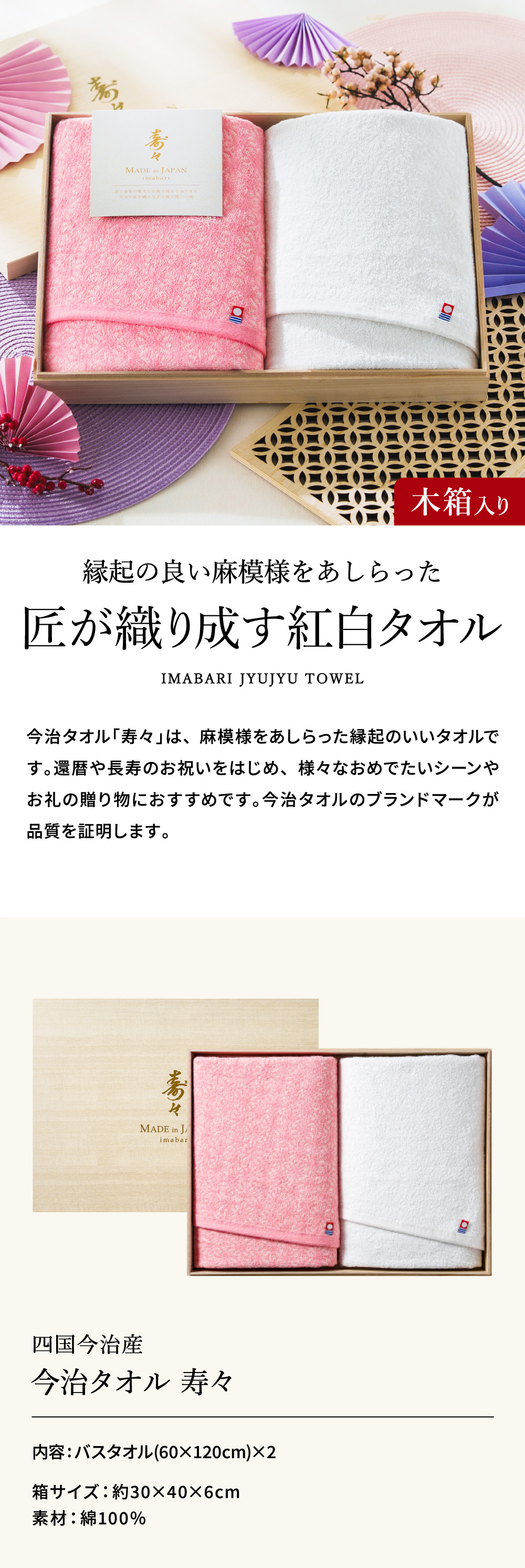 寿々(じゅじゅ) 木箱入り紅白タオル(今治タオル)