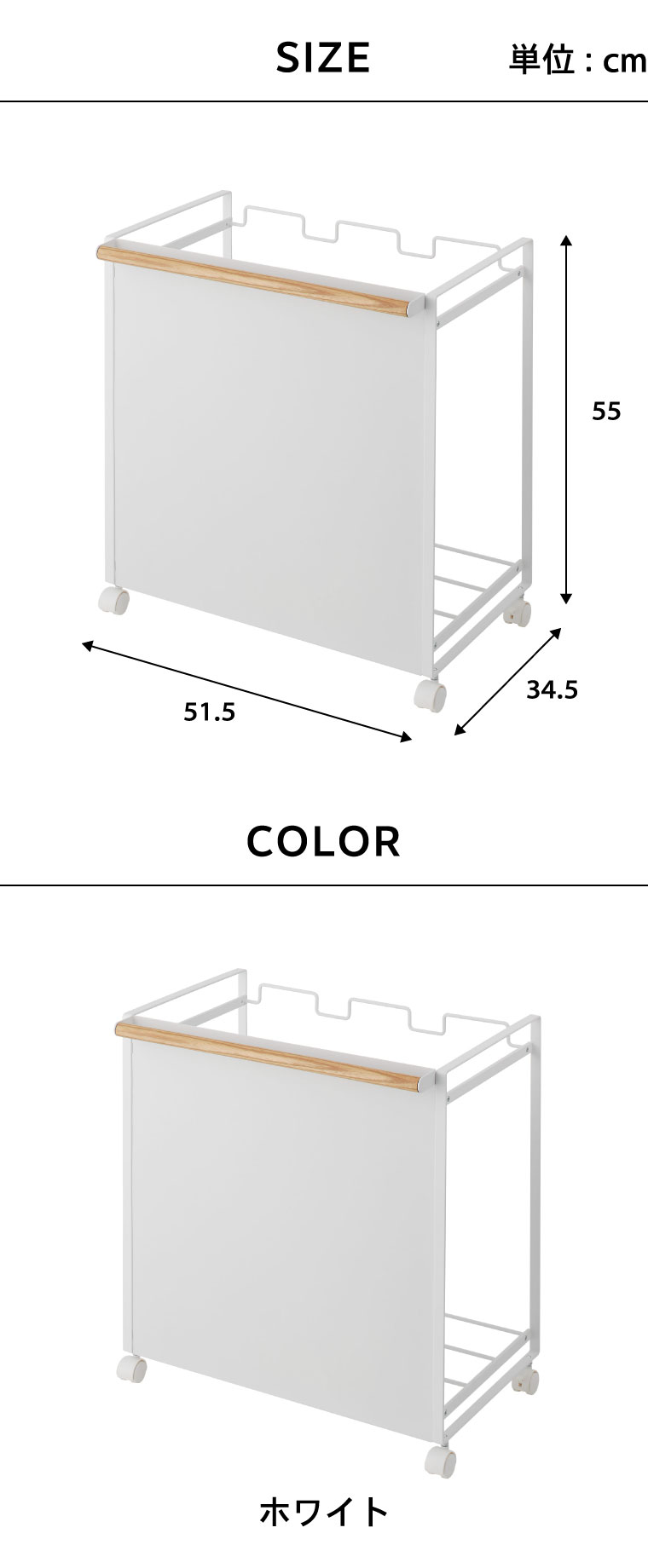 【商品サイズ】約51.5X34.5X55cm 【付属品】スパナ 【重量】(約)5.1kg 【素材・材質】本体:スチール(粉体塗装) 天然木(ラッカー塗装) キャスター:ナイロン 【箱サイズ】(約)横49×奥行き7.5×高さ53cm ●JANコード:4903208047807