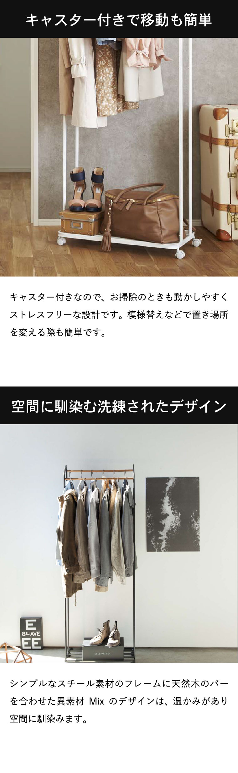 【素材・材質】本体:スチール(粉体塗装) バー:天然木 キャスター:ナイロン