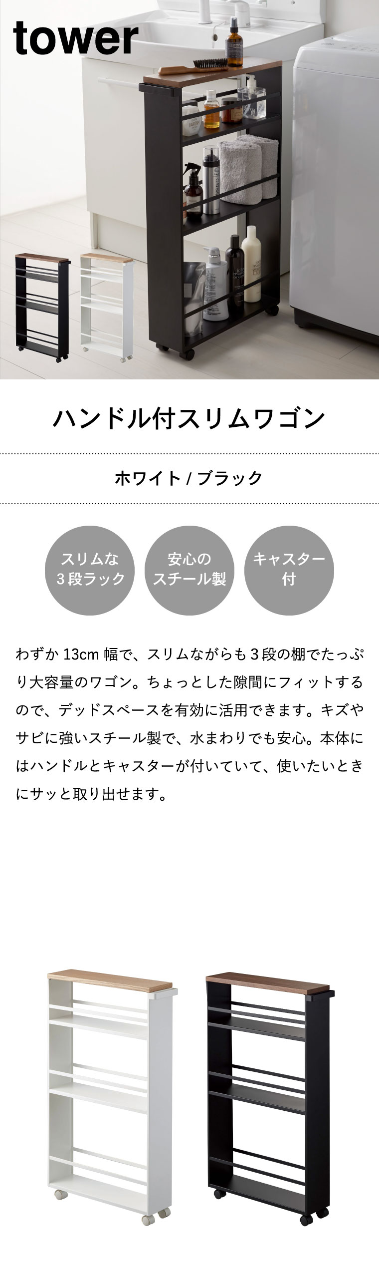 ハンドル付きスリムワゴン tower タワー