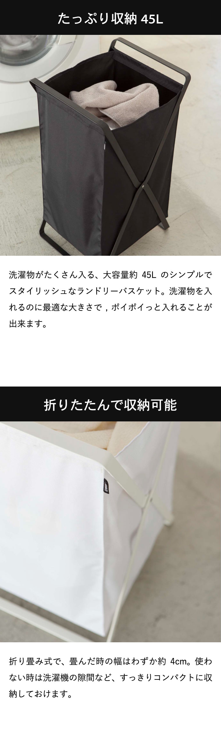 ●素材・材質:フレーム:スチール(粉体塗装) バスケット:ポリエステル100% 底板:ポリプロピレン ●商品サイズ:(約)横30×奥行き36×高さ64cm ●商品重量:(約)2300g ●型番:LD-J WH/LD-J BK ●JANコード:4903208024846 4903208024853