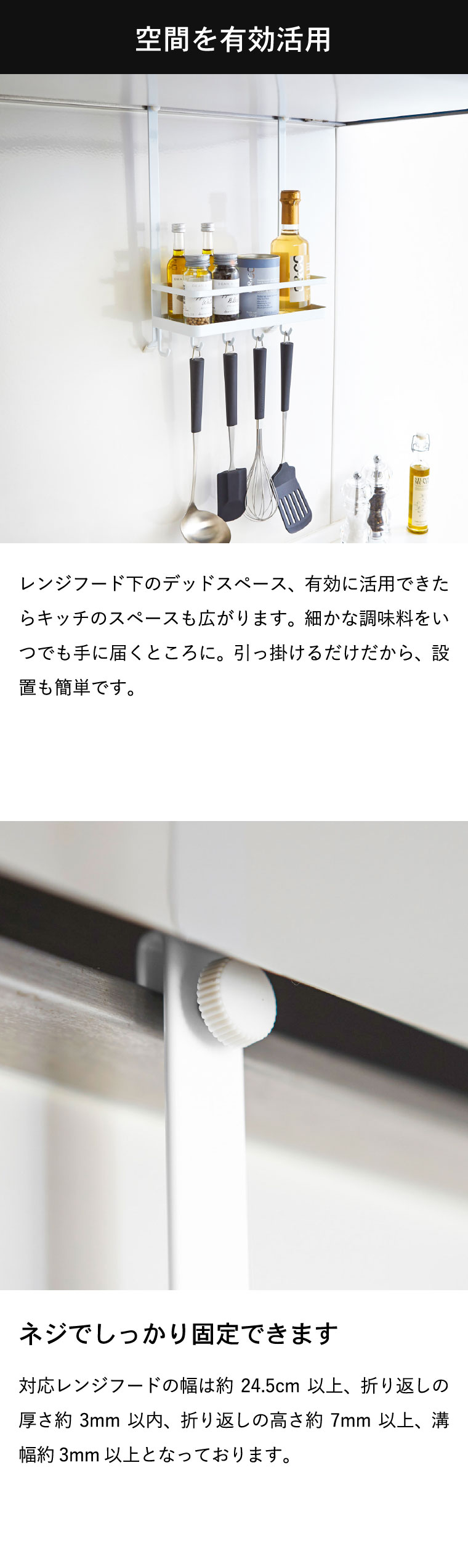 ●対応サイズ:レンジフードの幅:約24.5cm以上 折り返しの厚さ:約3mm以内 折り返しの高さ:約7mm以上  溝幅:約3mm以上