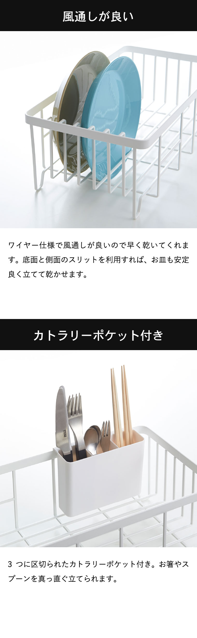 ●素材・材質:ワイヤーバスケット:スチール(ユニクロメッキ+粉体塗装) 水切りトレー・ポケット:ABS樹脂 水はけ:ポリプロピレン 水止栓:シリコーン