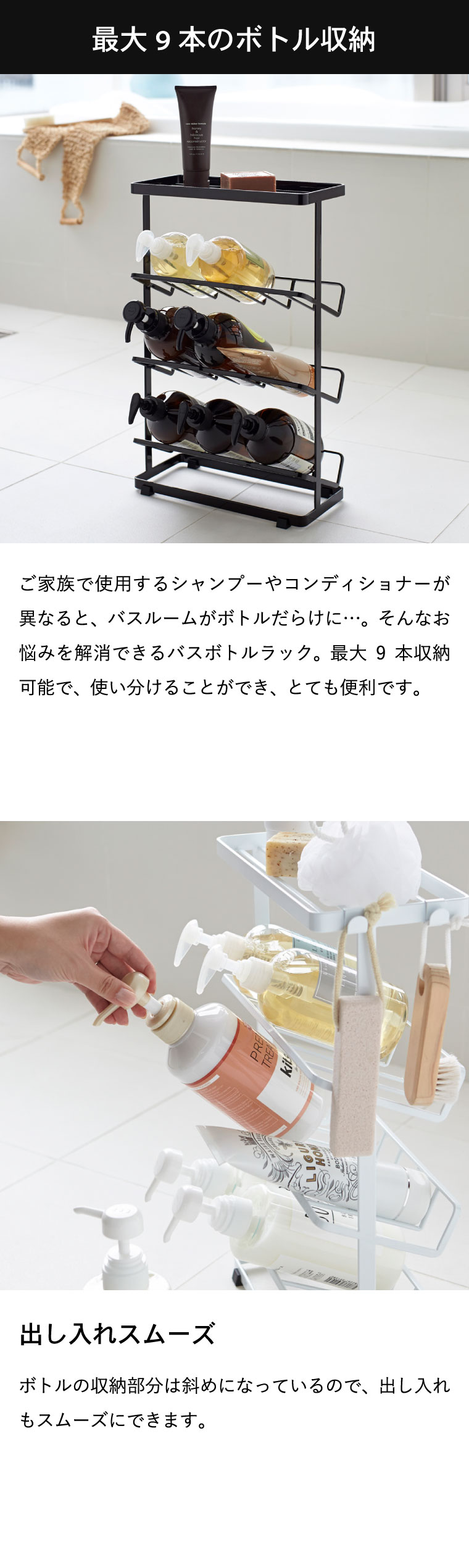 バスボトルラック タワー 山崎実業 tower ホワイト/ブラック 2909 2910 タワーシリーズ