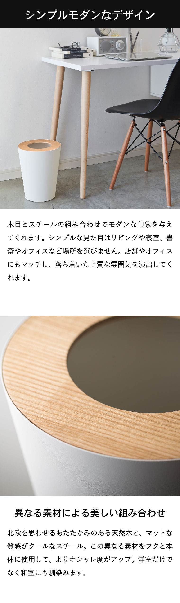 ●素材・材質:本体・ストッパーリング:スチール(粉体塗装)、蓋:天然木積層合板(ラッカー塗装)