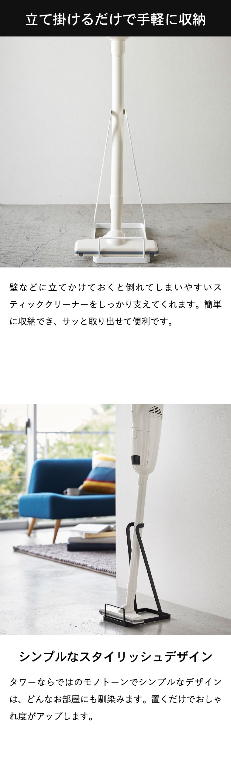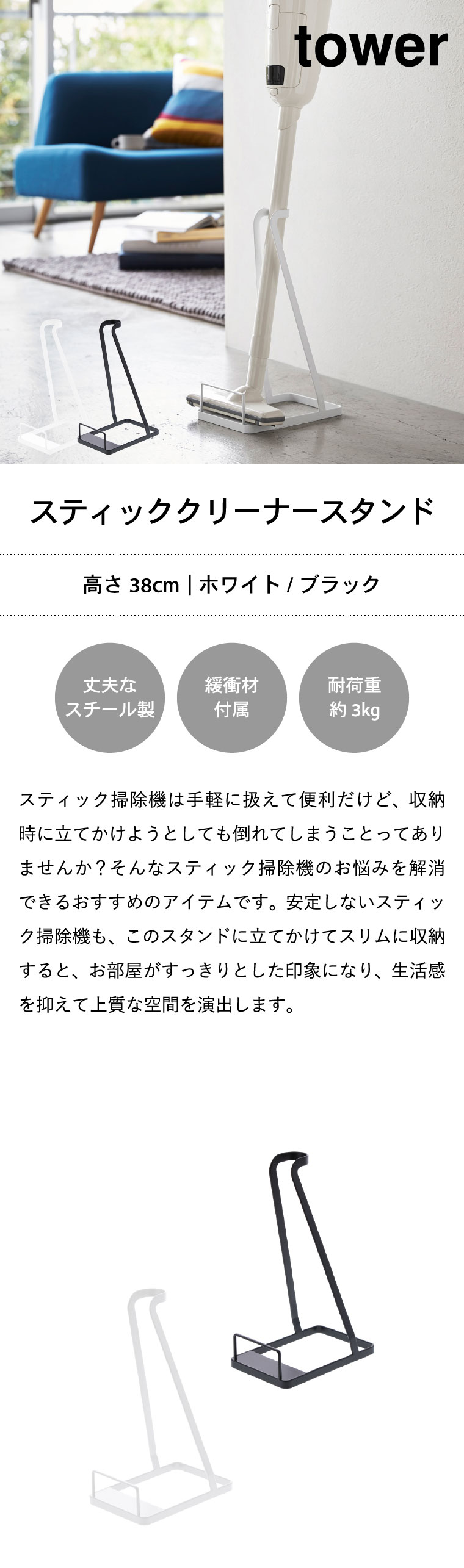 スティッククリーナースタンド タワー 山崎実業 tower ホワイト/ブラック 3273 3274 タワーシリーズ