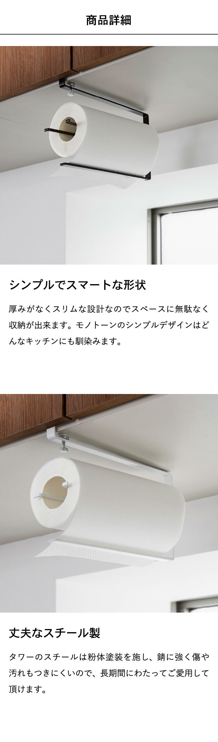 片手でカット戸棚下キッチンペーパーホルダー タワー WH