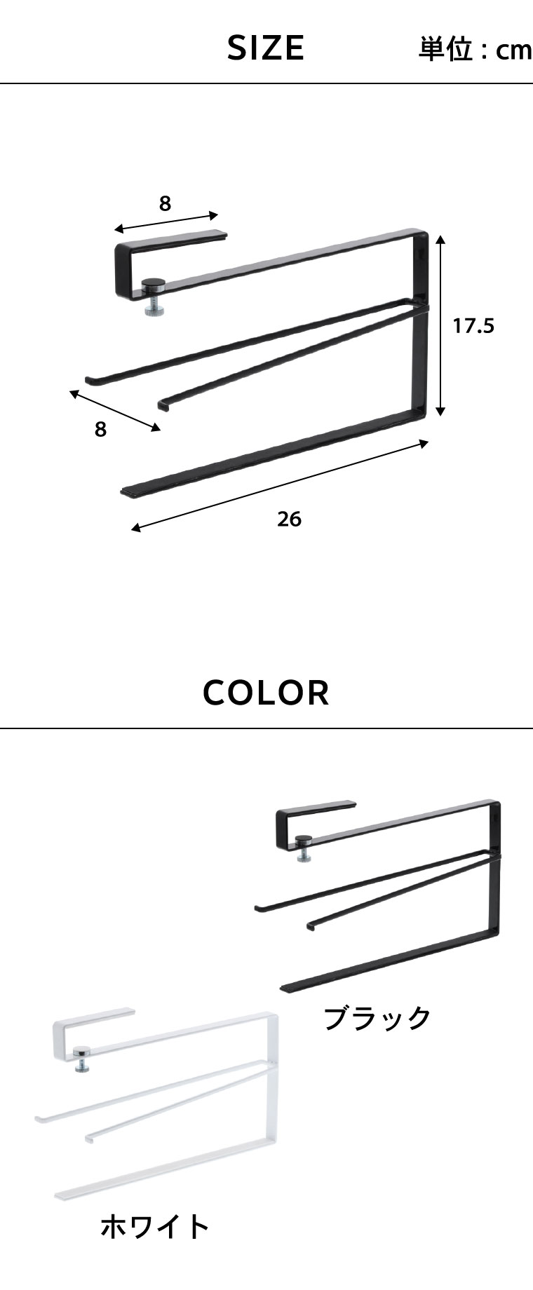 ●対応サイズ:取付可能な吊り下げ戸棚:棚板の厚さ約1.5~2.5cmまで。 取付可能なキッチンペーパーロール:直径11cm・高さ24cm以内・芯の直径3.6cm以上