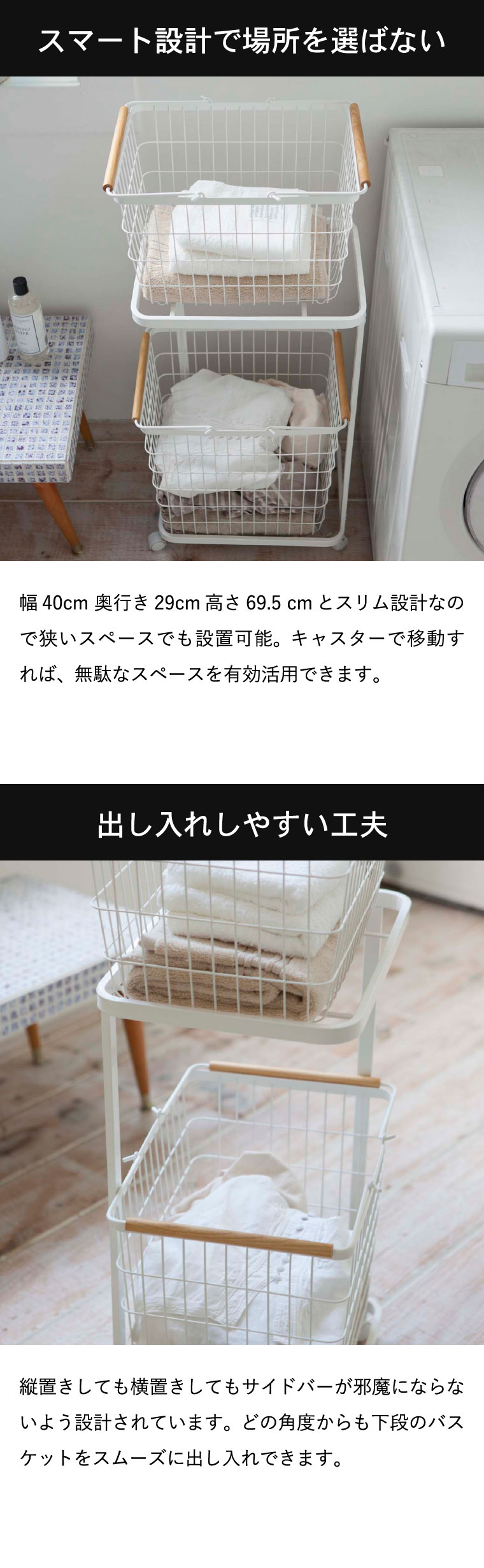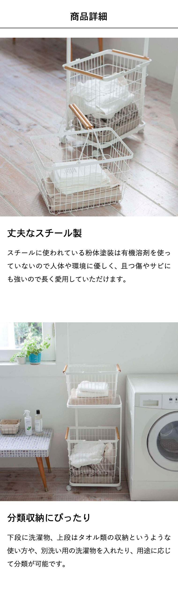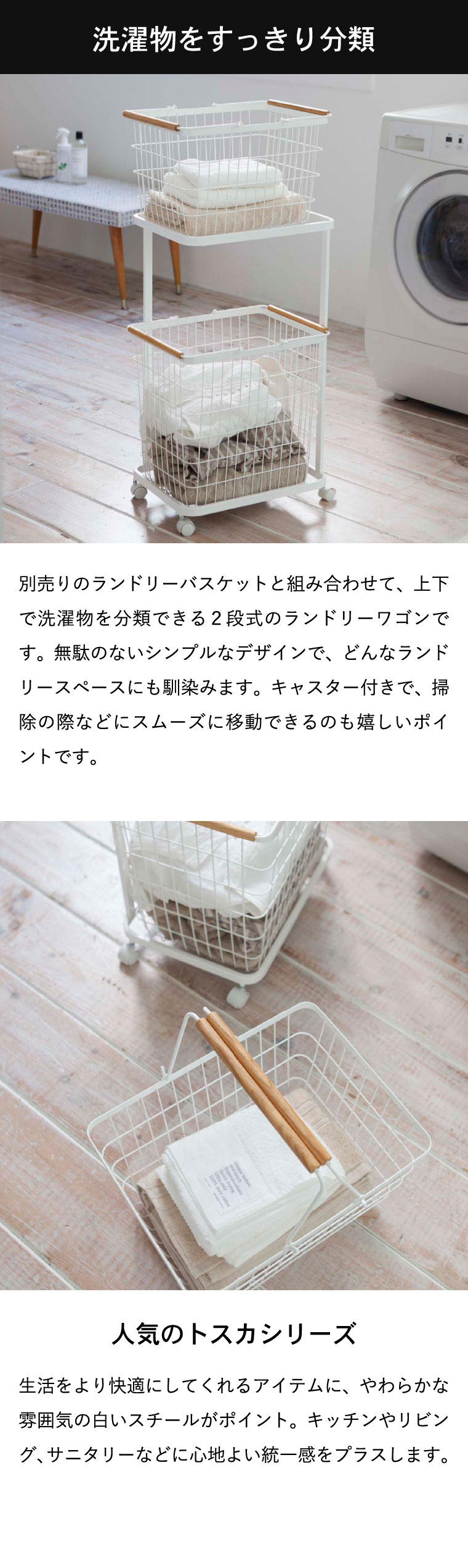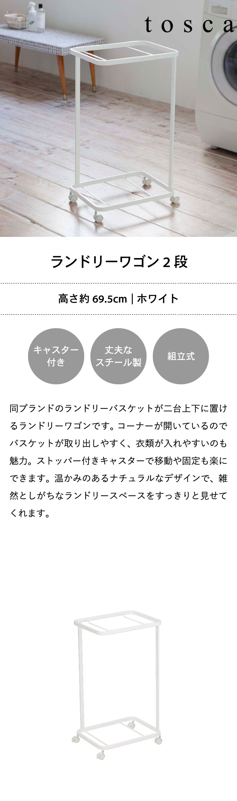 ランドリーワゴン 2段 トスカ 山崎実業 tosca ホワイト ストッパー付きキャスター 3299 タワーシリーズ