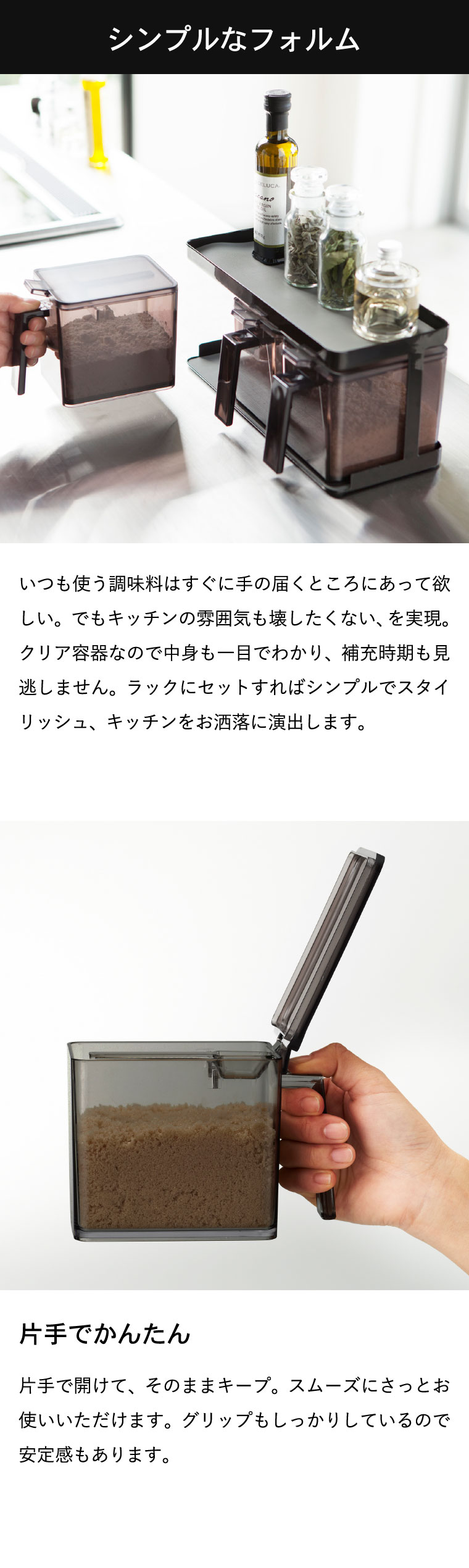 ●素材・材質:ラック(フレーム:スチール(粉体塗装) マット:合成ゴム) 調味料ストッカー(容器・スプーン・蓋・すり切り板):PS樹脂