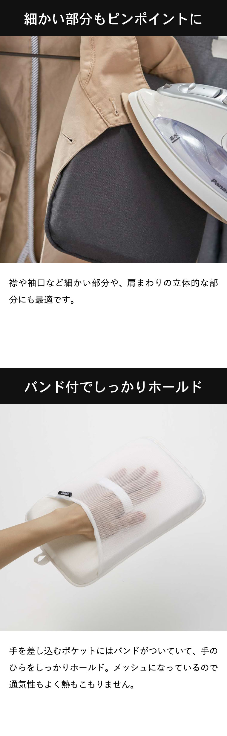 ●素材・材質:表面布:綿100% メッシュポケット:ポリエステル クッション材:ポリウレタンフォーム・フィルムシート ●商品サイズ:(約)横18×奥行き4×高さ27cm ●商品重量:(約)117g ●型番:IRON-MITTEN TW WH/IRON-MITTEN TW BK ●JANコード:4903208033596 4903208033602