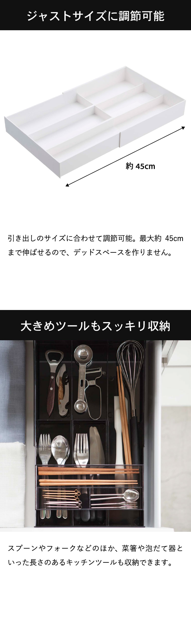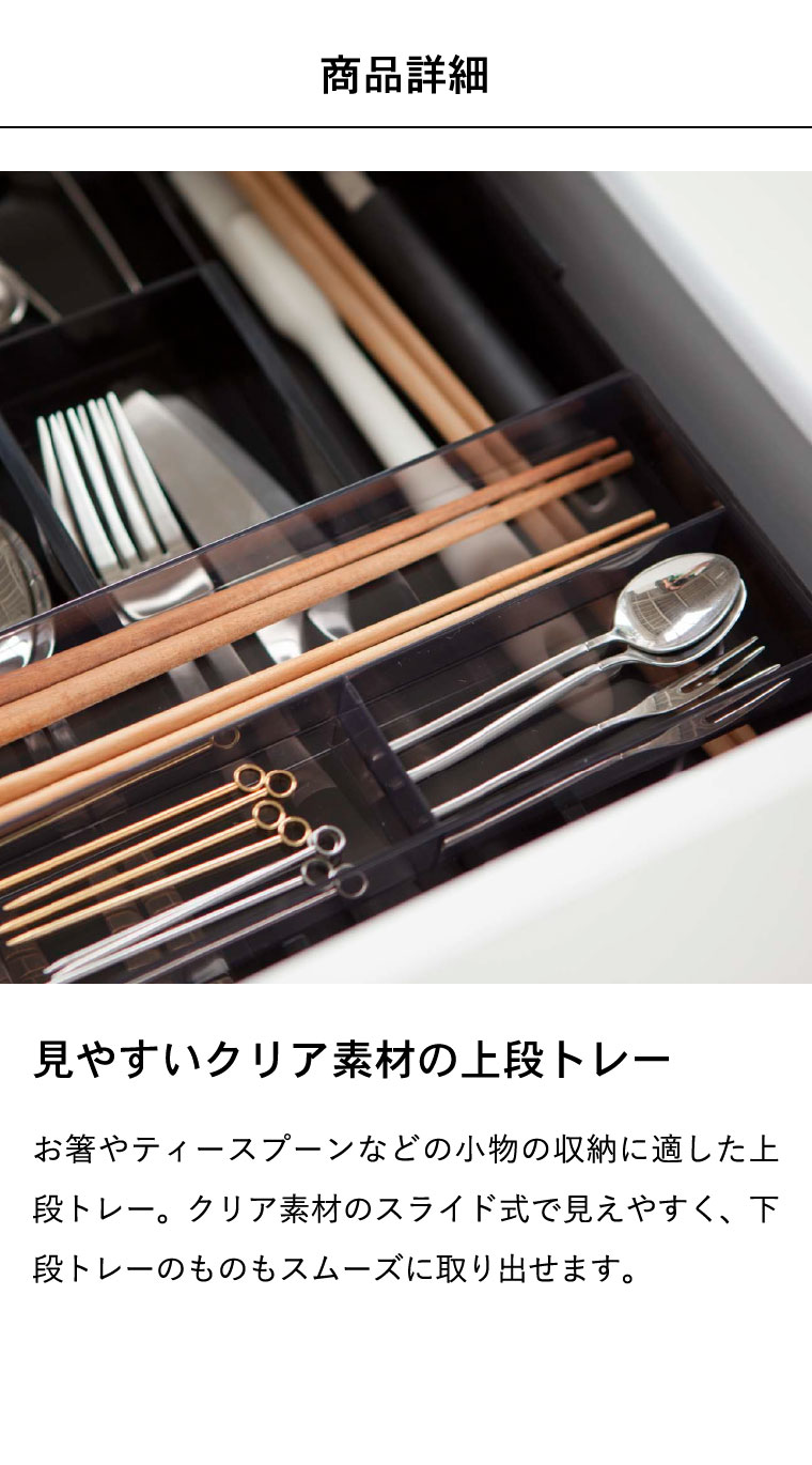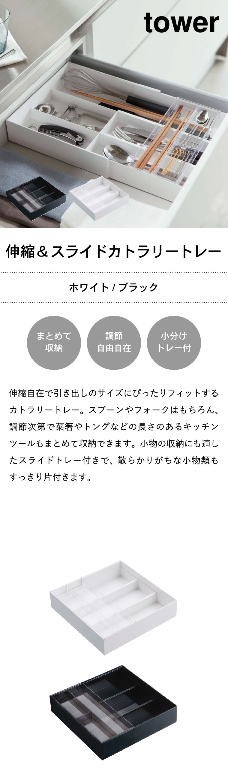伸縮&スライド カトラリートレー タワー 山崎実業 tower ホワイト/ブラック 3382 3383 タワーシリーズ