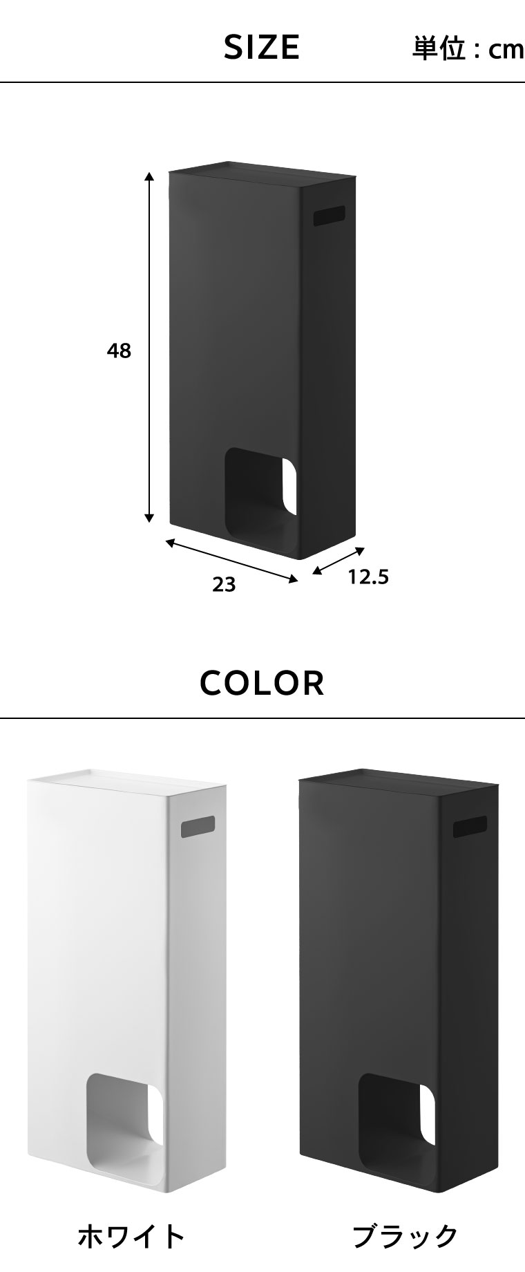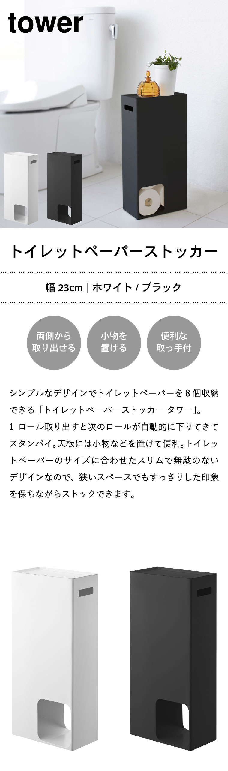 ●対応サイズ:約幅11.5×直径11.5cmまでのトイレットペーパーロールに対応 ●素材・材質:本体:スチール(粉体塗装) ●商品サイズ:(約)横23×奥行き12.5×高さ48cm ●商品重量:(約)2600g ●型番:HW-D WH/HW-D BK ●JANコード:4903208034555 4903208034562