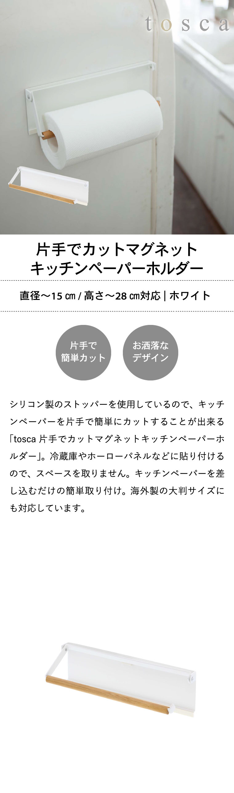 片手でカットマグネットキッチンペーパーホルダー トスカ