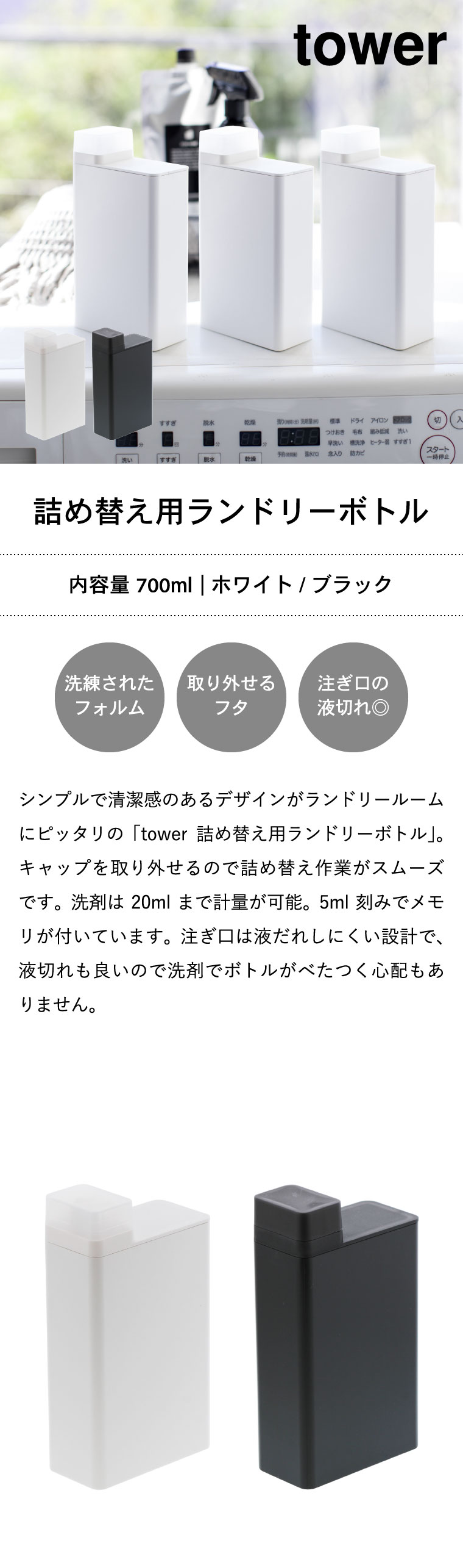 詰め替え用ランドリーボトル タワー