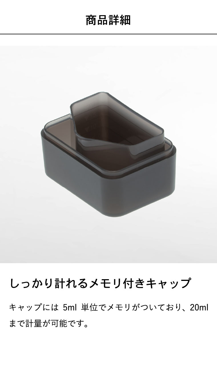 ●素材・材質:容器・蓋:AS樹脂 キャップ:ポリプロピレン パッキン:シリコーン