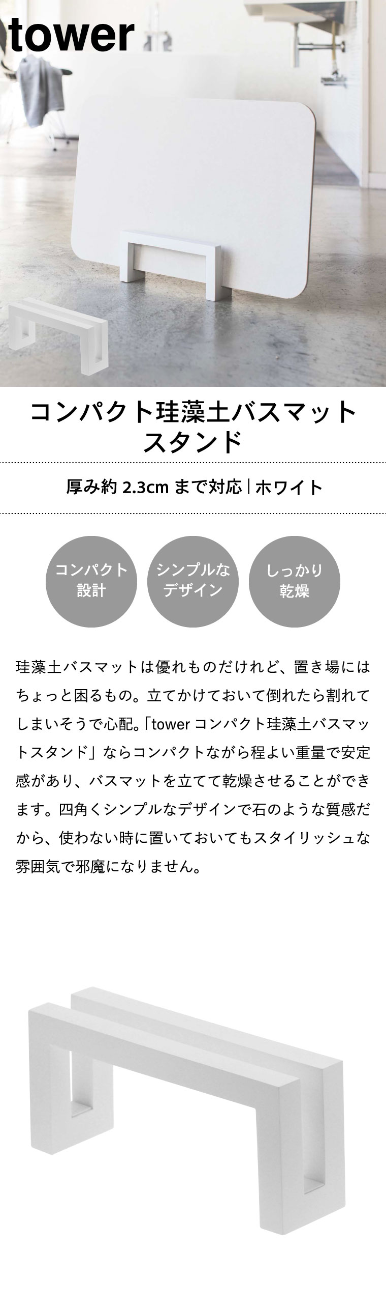 | ≫ 【2】TOWER コンパクト珪藻土バスマットスタンド |