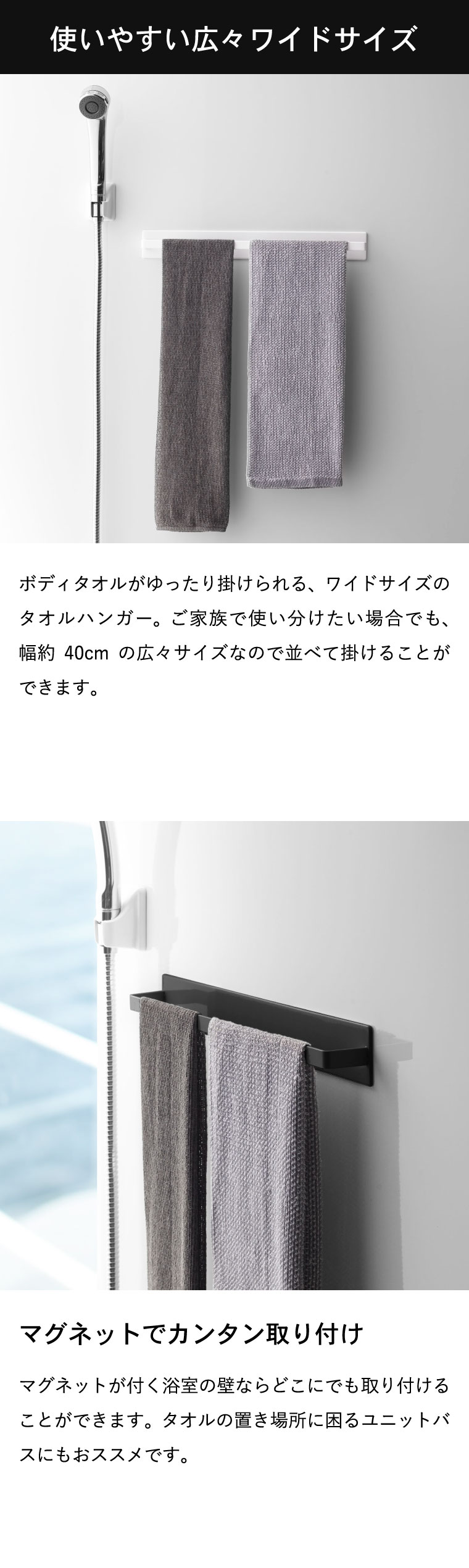 マグネットバスルームタオルハンガー タワーワイド
