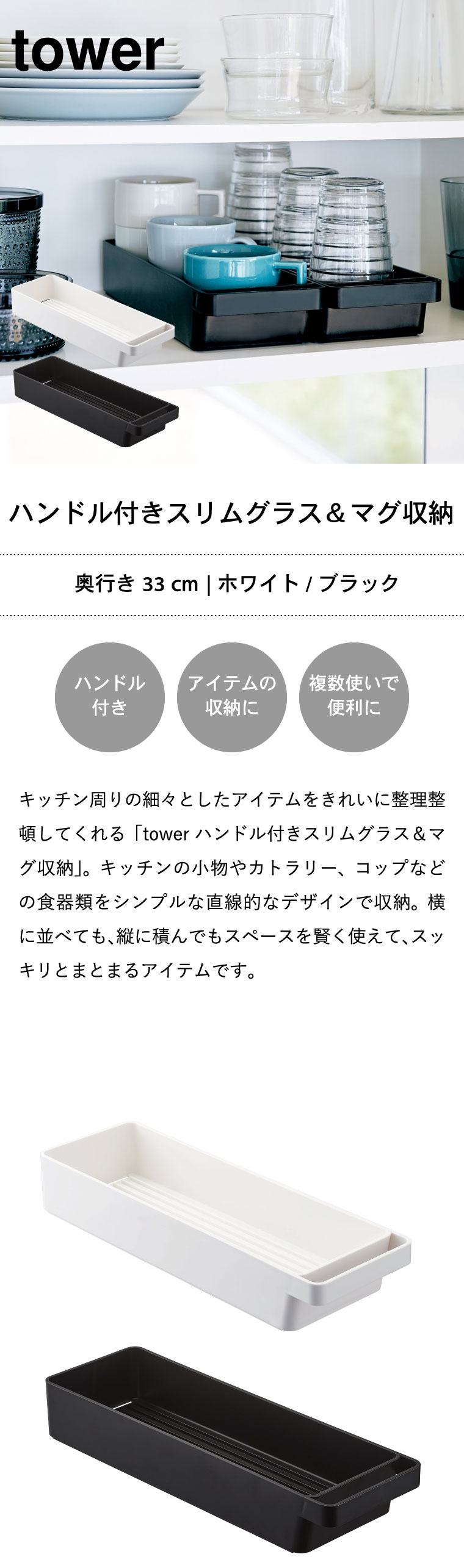 | ≫/ 【2】TOWER ハンドル付きスリムグラス&マグ収納 |