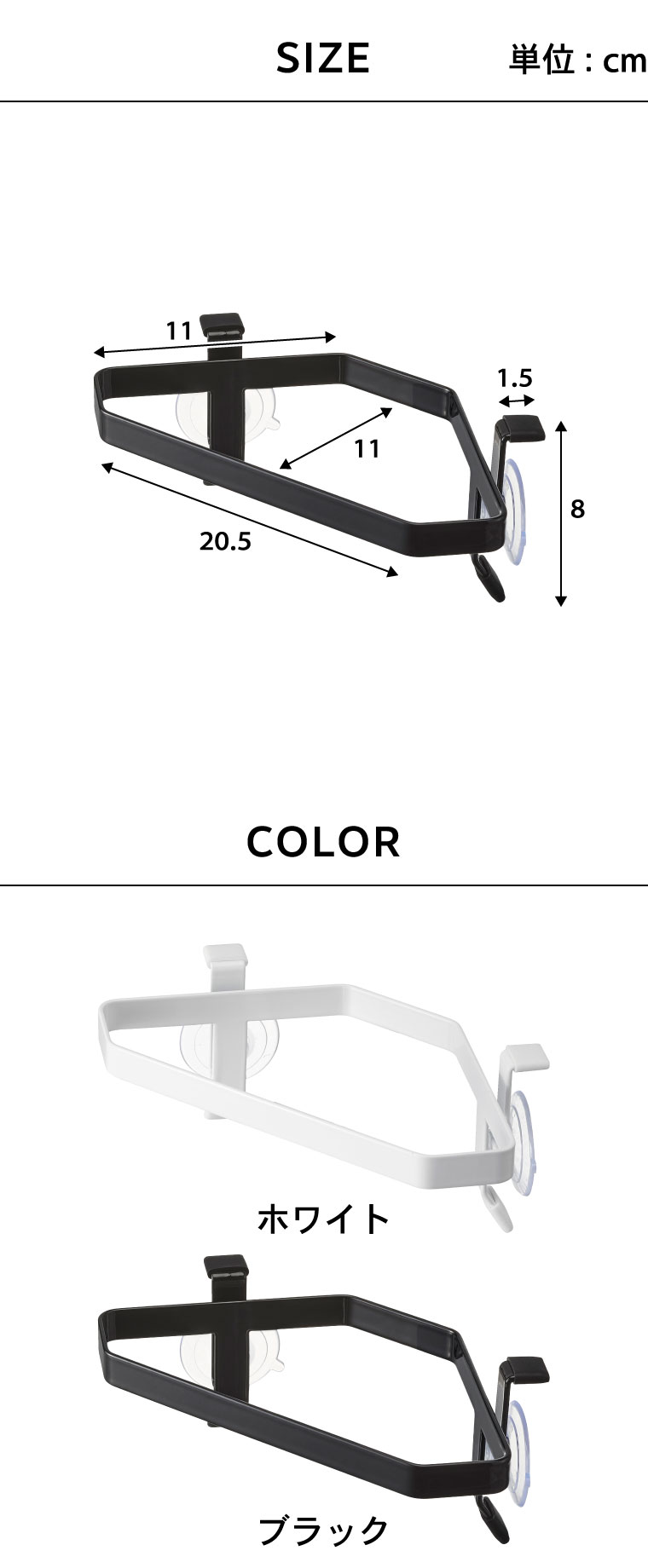 ●素材・材質:本体:スチール(ユニクロメッキ+粉体塗装) 滑り止め:シリコーン 吸盤:PVC×2