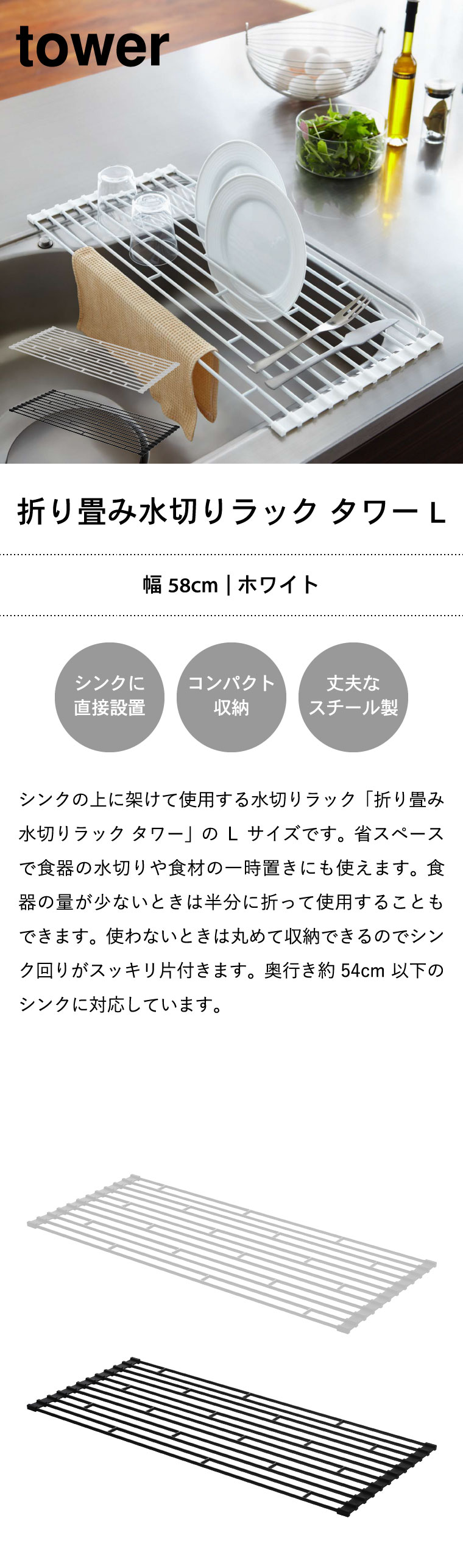 折り畳み水切りラック タワー 山崎実業 tower 折りたたみ水切りラックL ホワイト/ブラック 7835 7836 タワーシリーズ