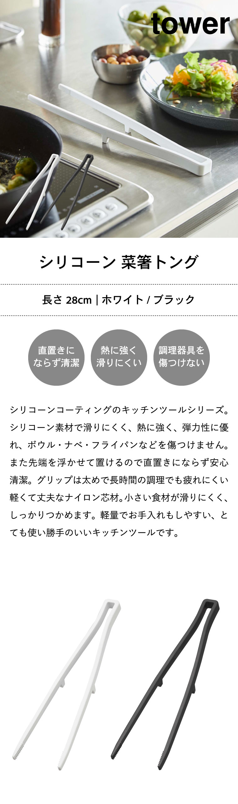 シリコーン菜箸トング タワー 山崎実業 tower ホワイト/ブラック 5195 5196 タワーシリーズ