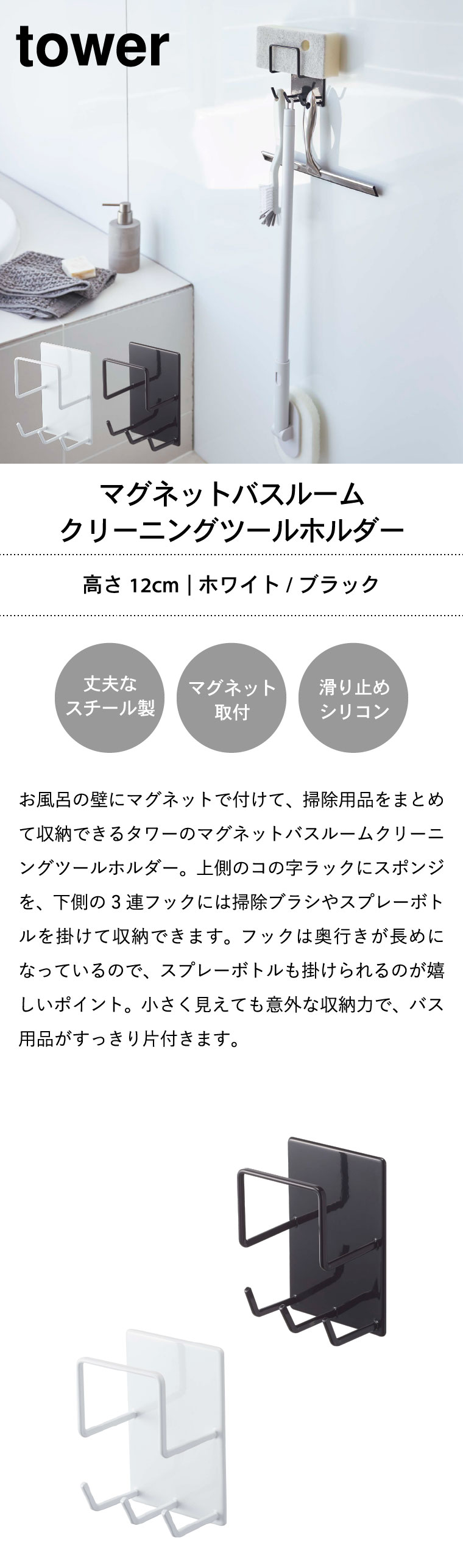 マグネットバスルームクリーニングツールホルダー タワー