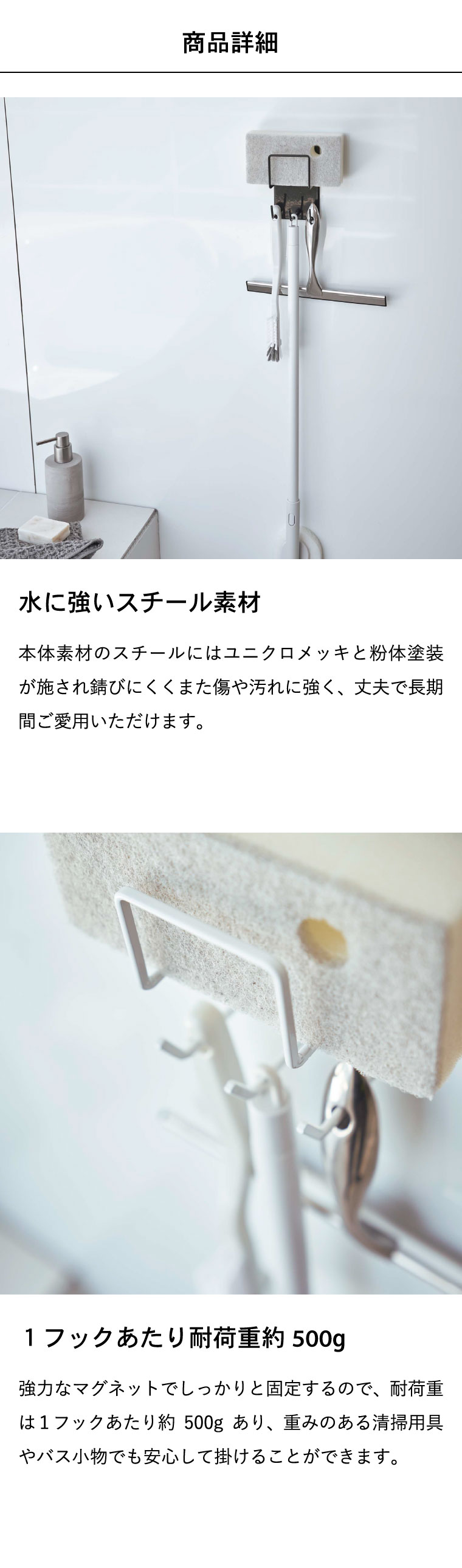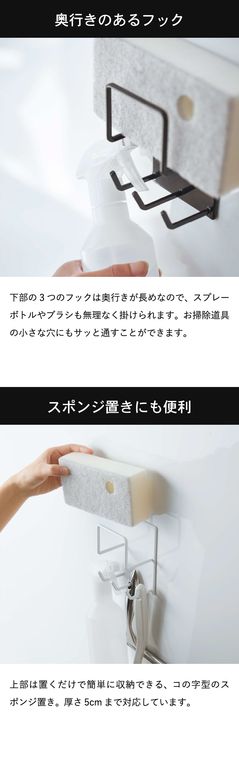 ●耐荷重:スポンジホルダー:約250g フック1つにつき約500g