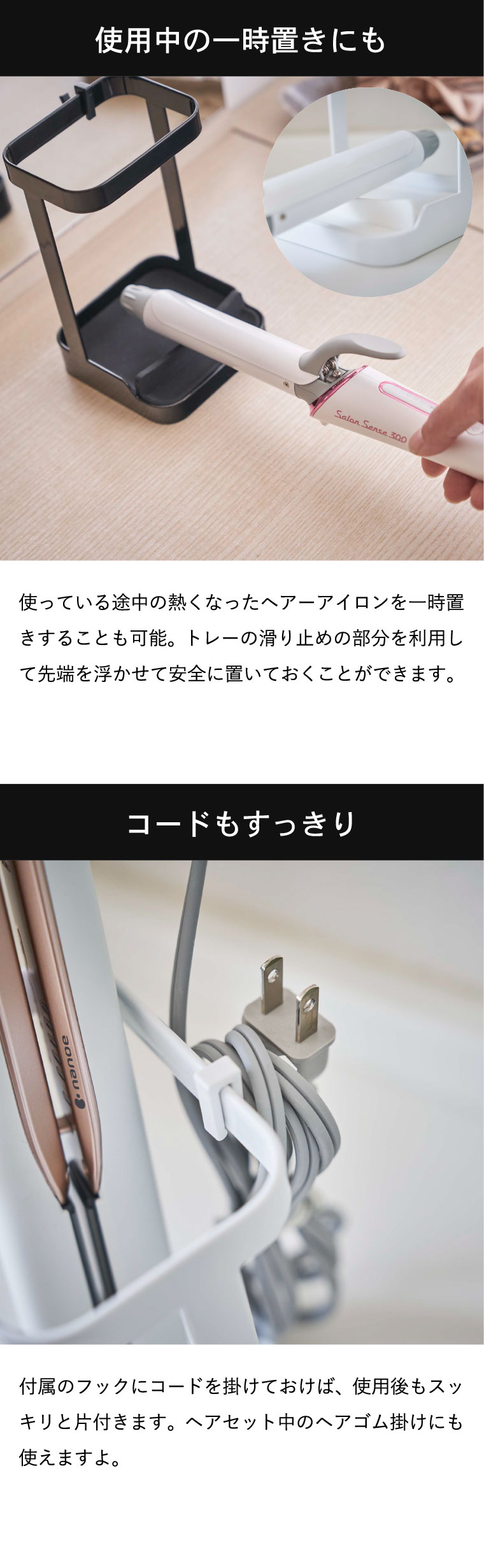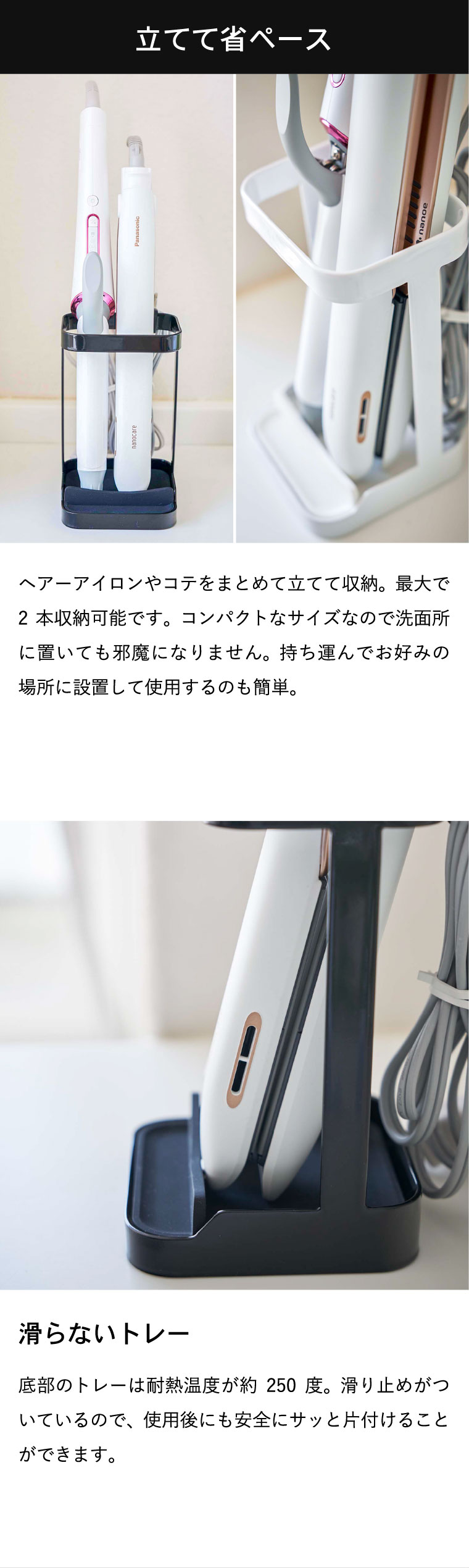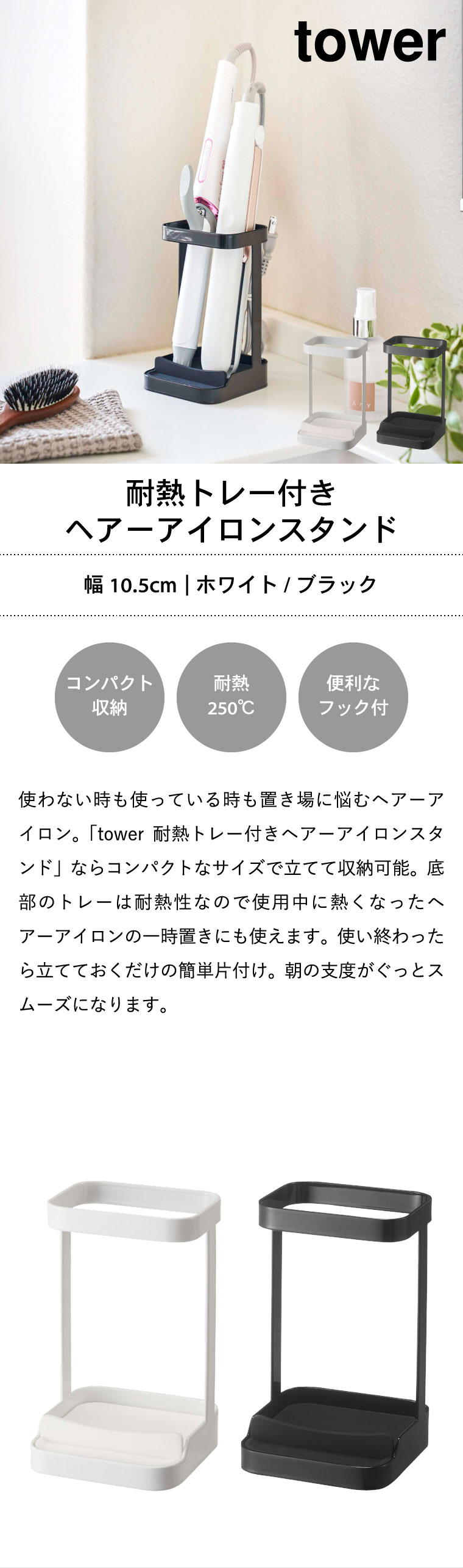 耐熱トレー付き ヘアーアイロンスタンド タワー 山崎実業 tower ホワイト/ブラック 5062 5063 タワーシリーズ