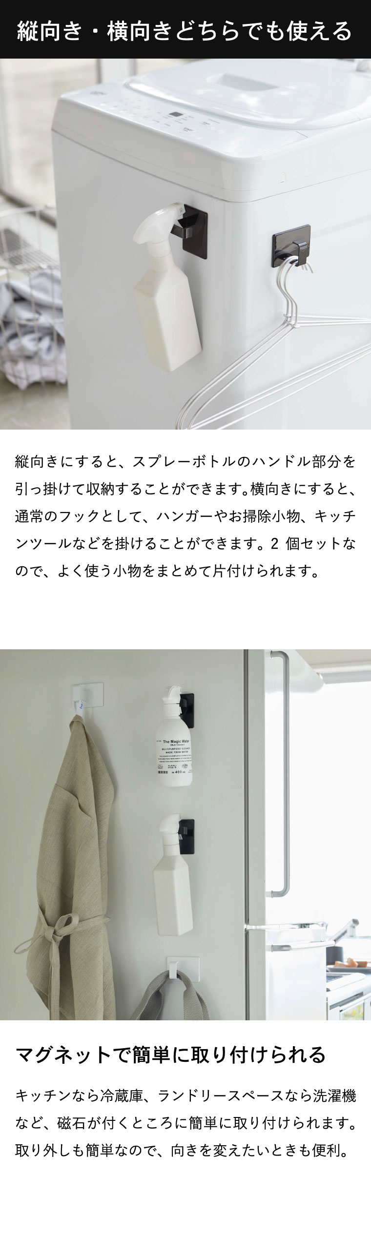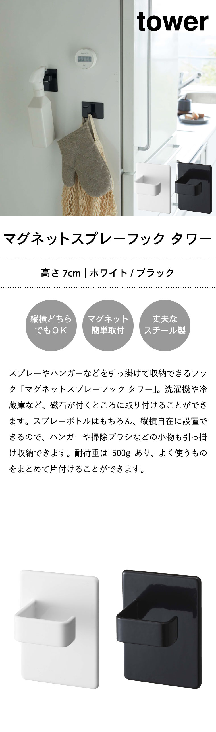 マグネットスプレーフック 2個組 タワー 山崎実業 tower ホワイト/ブラック 5072 5073 タワーシリーズ