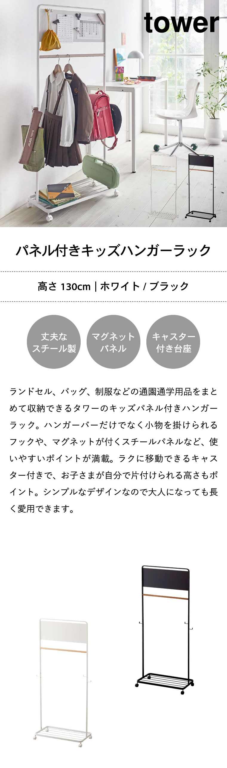 キッズパネル付きハンガーラック タワー