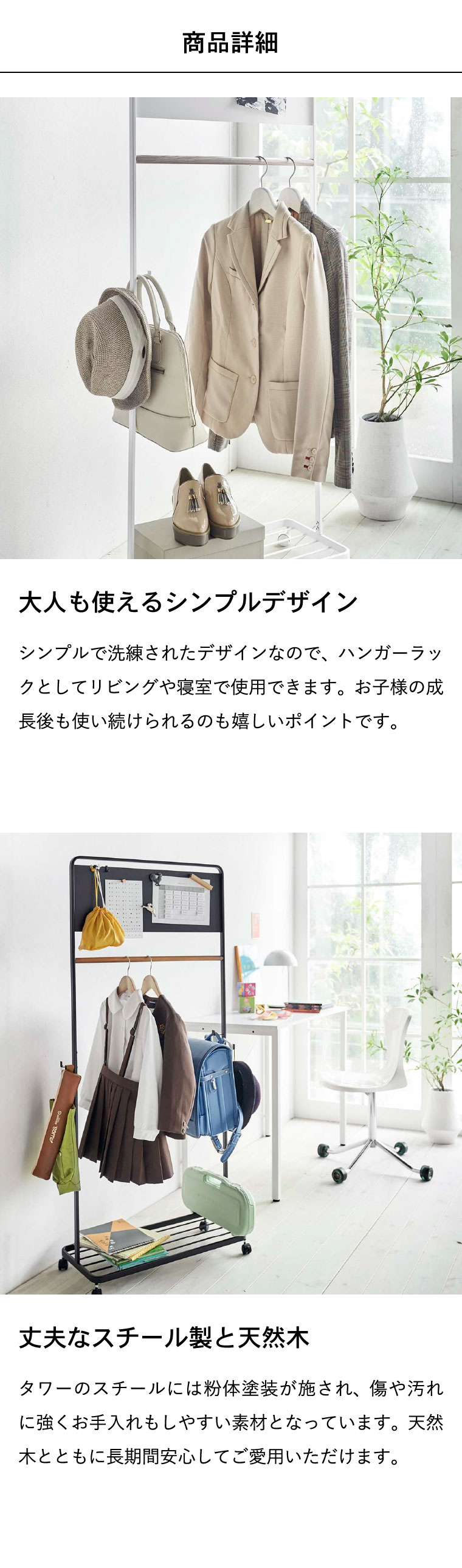 ●素材・材質:本体:スチール(粉体塗装) ハンガーバー:天然木 キャスター:ナイロン