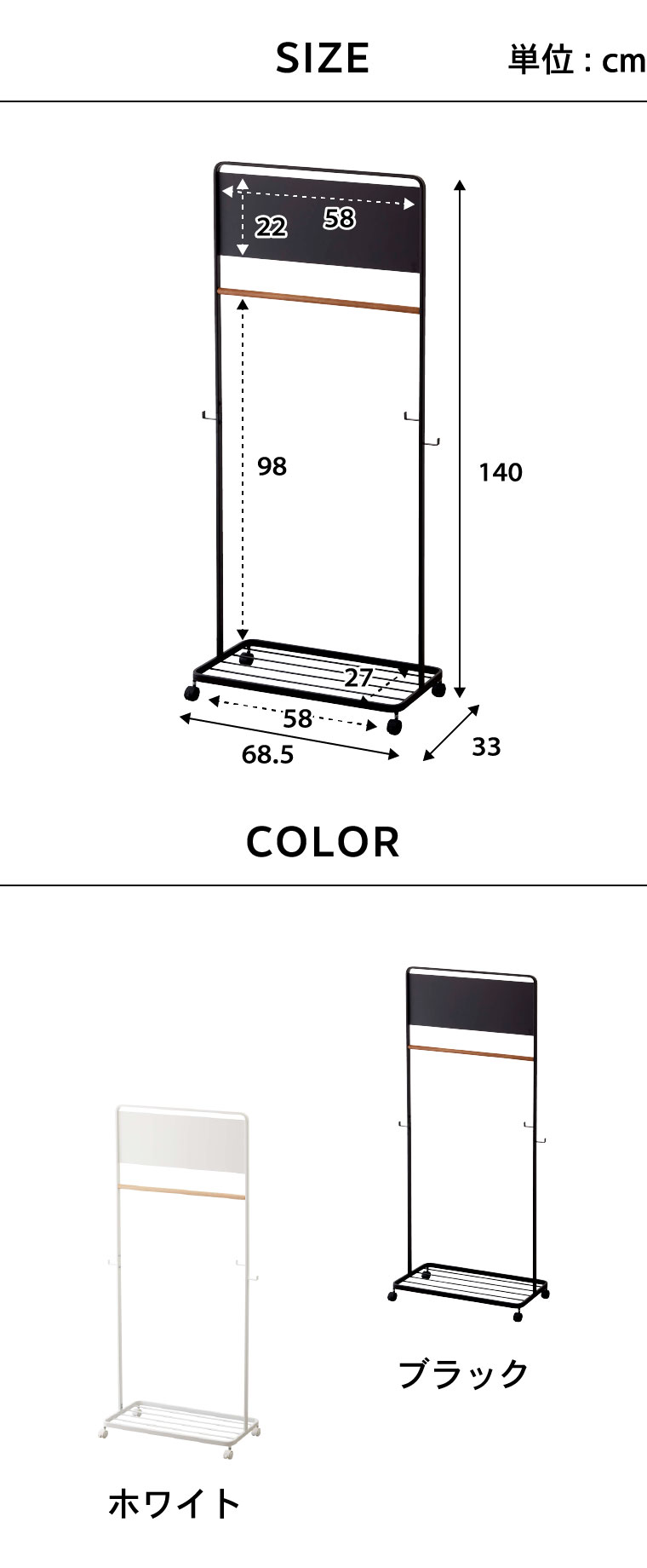 ●内寸サイズ:台座:約W58×D27cm パネル:約W58×H22cm 台座からハンガーバーまでの高さ:約98cm