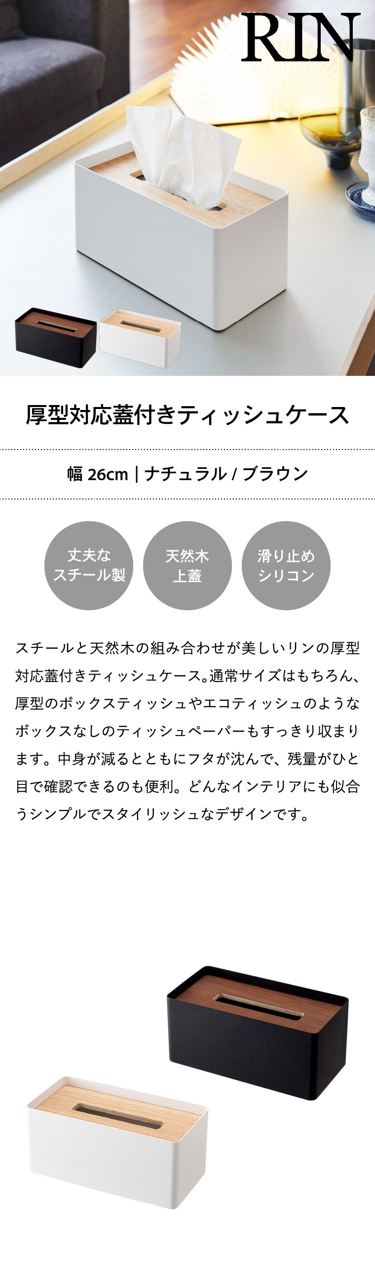 厚型対応蓋付きティッシュケース リン