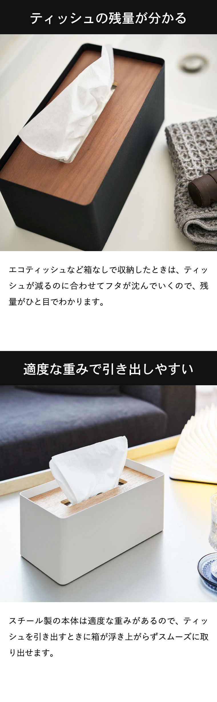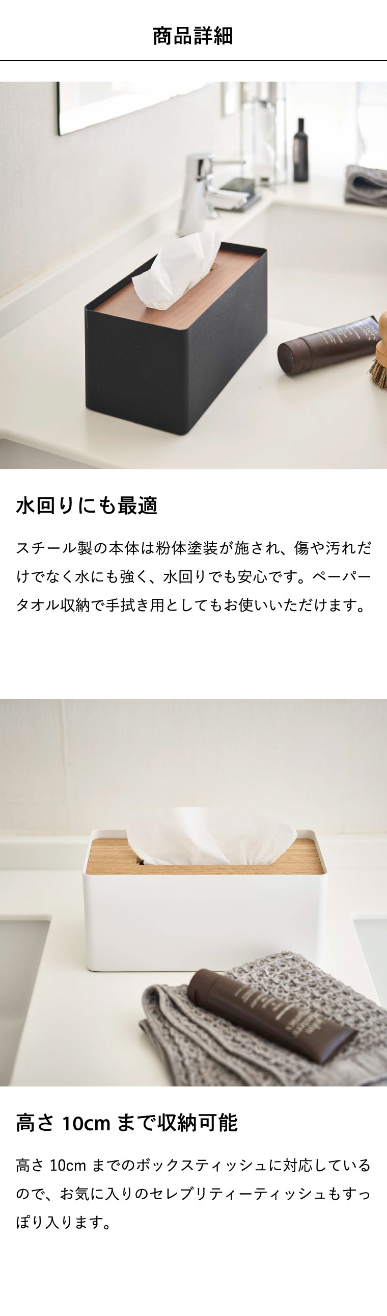 ●対応サイズ:一般的なサイズのティッシュ・ペーパータオル・高さ約10cmまでの厚型ティッシュボックス
