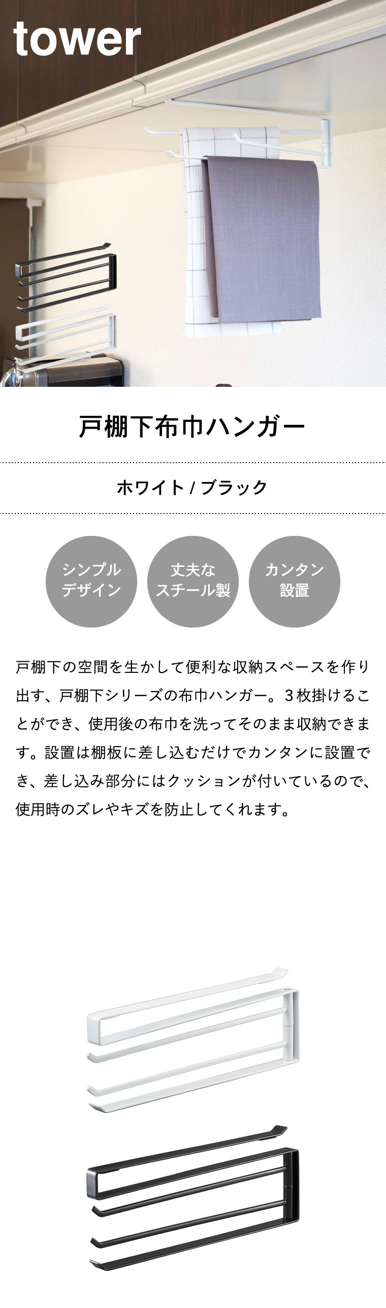 | ≫/ 【4】TOWER 戸棚下布巾ハンガー |