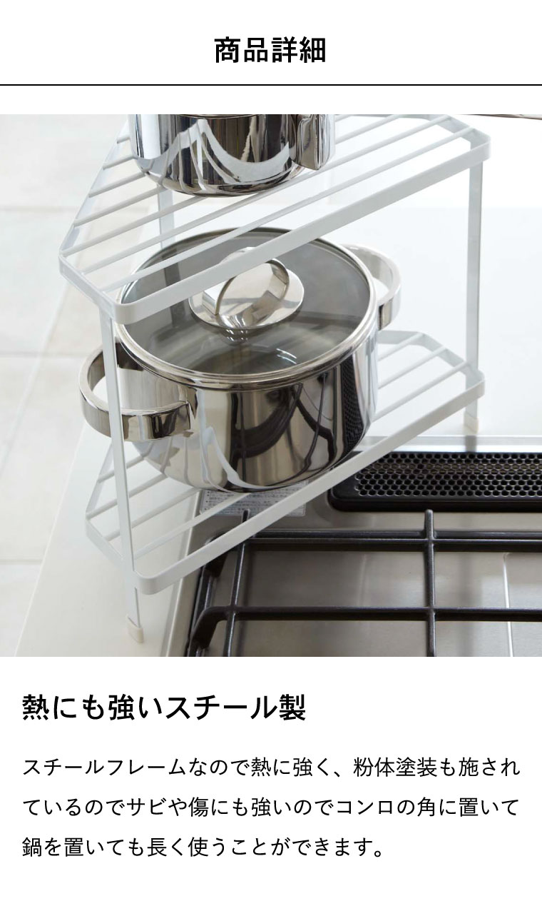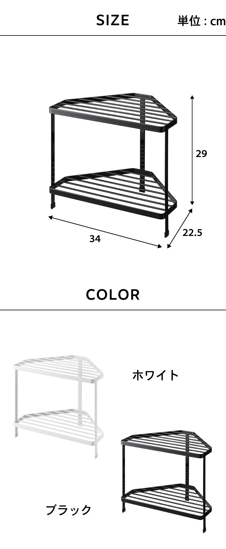 ●商品サイズ:約34X22.5X29cm ●商品重量:約1100g ●素材・材質:本体:スチール(粉体塗装) クッション:シリコーン ●耐荷重:各棚約2.5kg ●JANコード:4903208074537 4903208074544