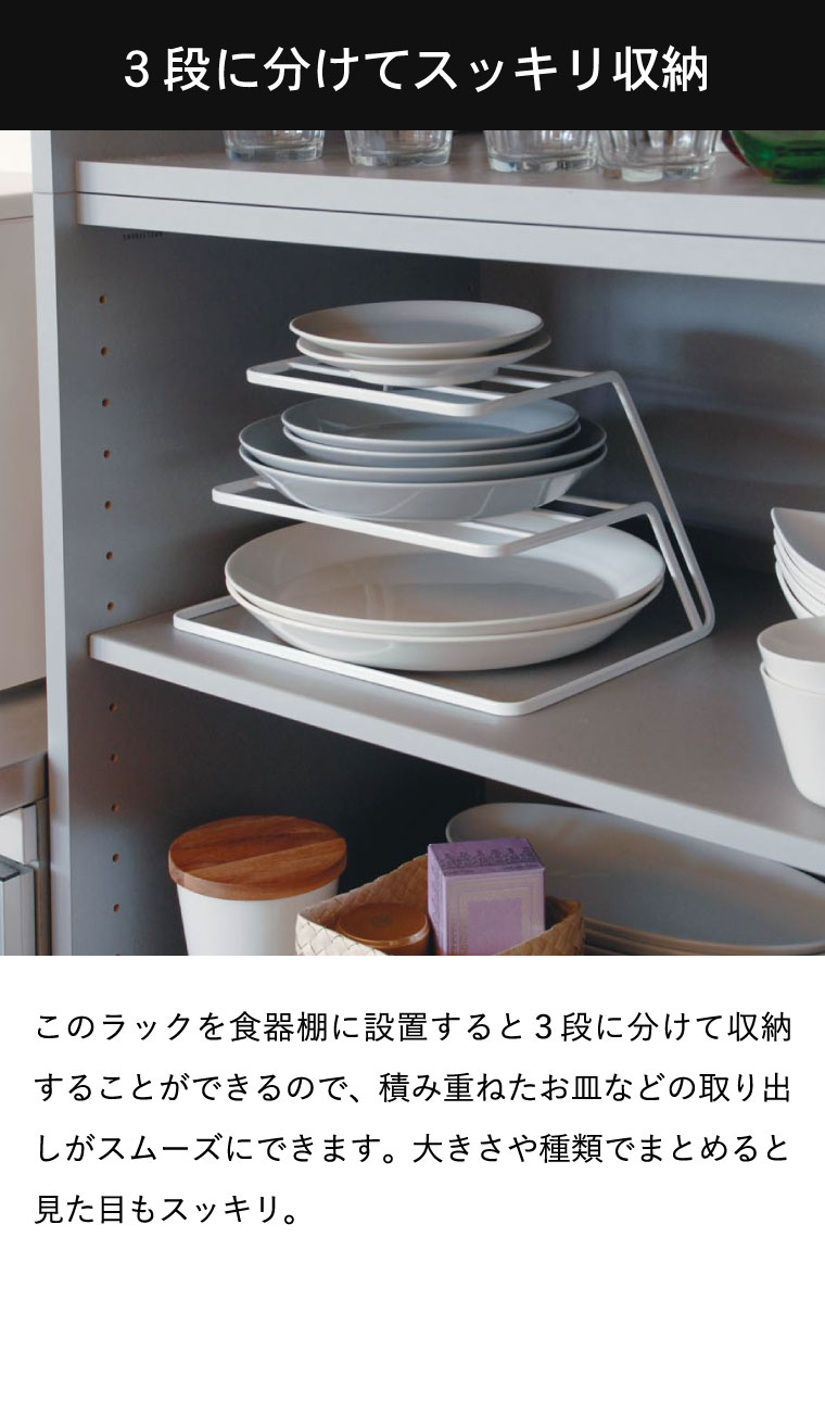 ●対応サイズ:直径約15~26cmのお皿が、各段に約6~8枚程度収納できます。 (お皿の厚さにより枚数は異なります。)