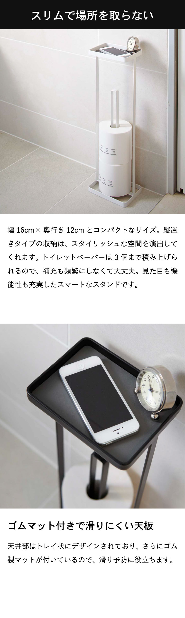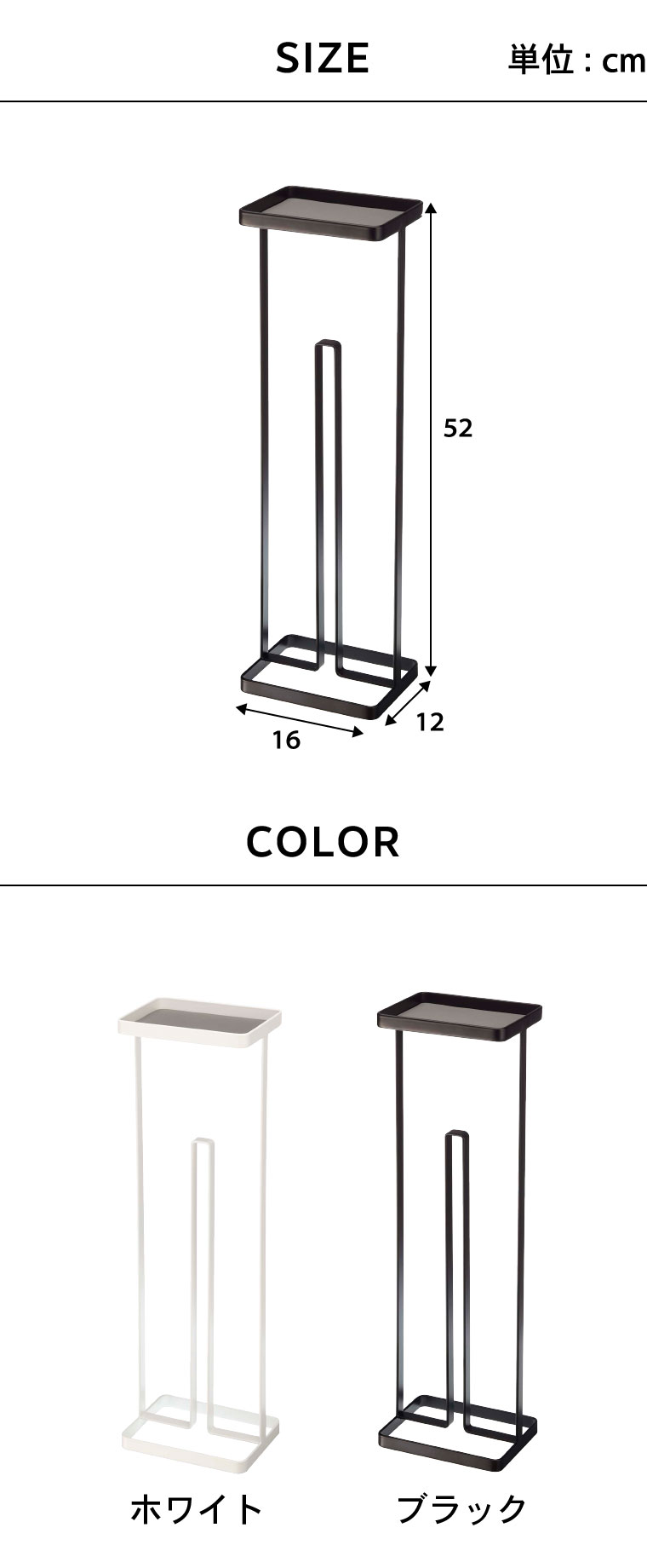 ●商品サイズ:約16X12X52cm ●商品重量:約900g ●素材・材質:本体/スチール(粉体塗装) マット/合成ゴム ●対応サイズ:約幅11.5×直径12cm(芯の内径3.8cm)の一般的なトイレットペーパーに対応 ●JANコード:4903208077392 4903208077408