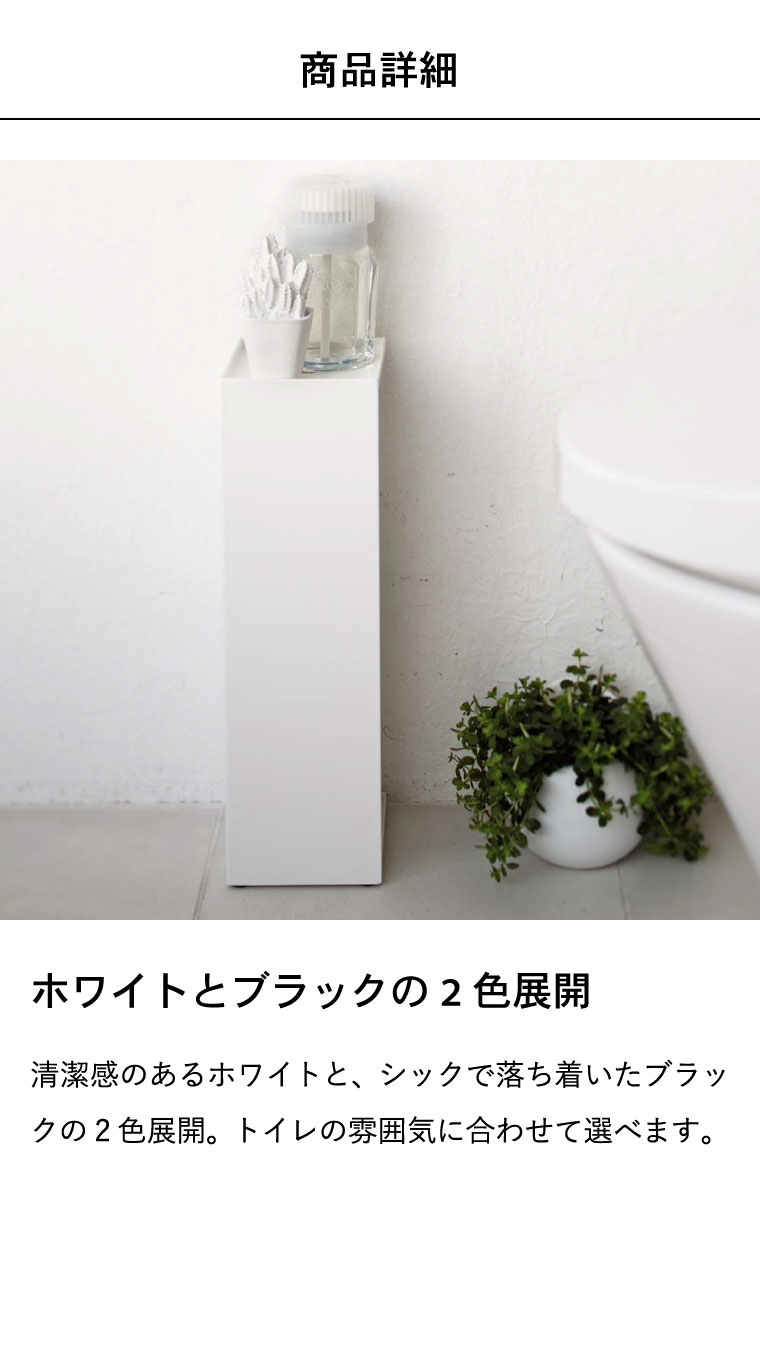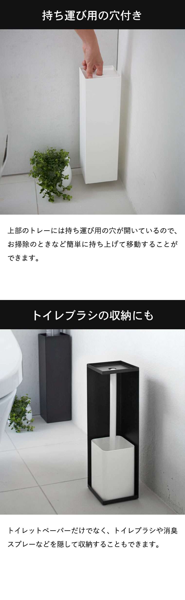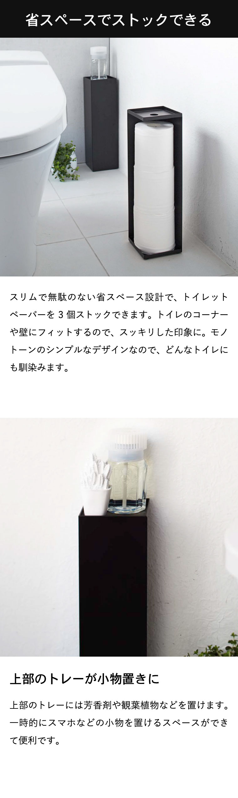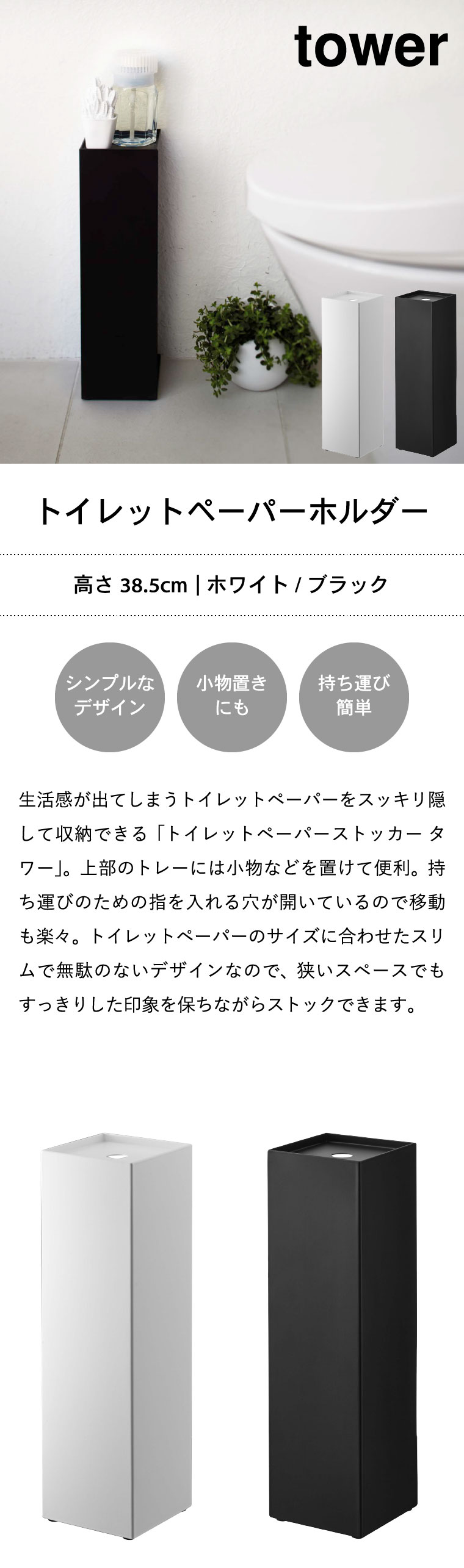 ●商品サイズ:約11.5X11.5X38.5cm ●商品重量:約1000g ●素材・材質:本体:スチール(粉体塗装) ●耐荷重:トレー:約2kg ●対応サイズ:約幅11.5×直径11.5cmのトイレットペーパーロールに対応。 ●JANコード:4903208078504 4903208078511