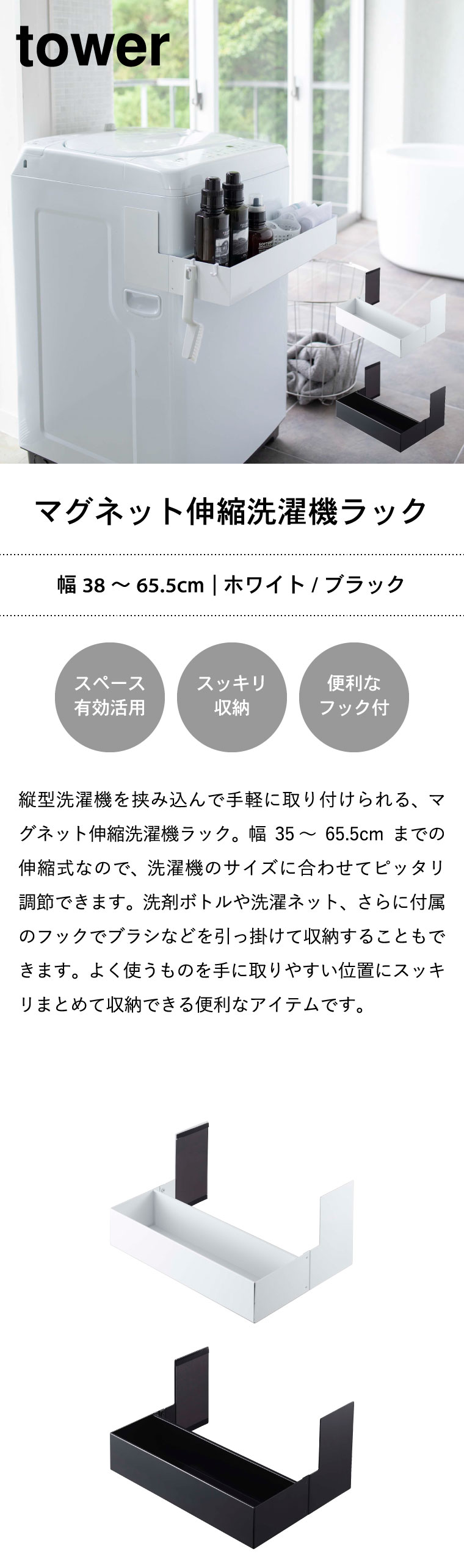 マグネット伸縮洗濯機ラック タワー 山崎実業 tower ホワイト/ブラック 5272 5273 タワーシリーズ マグネット