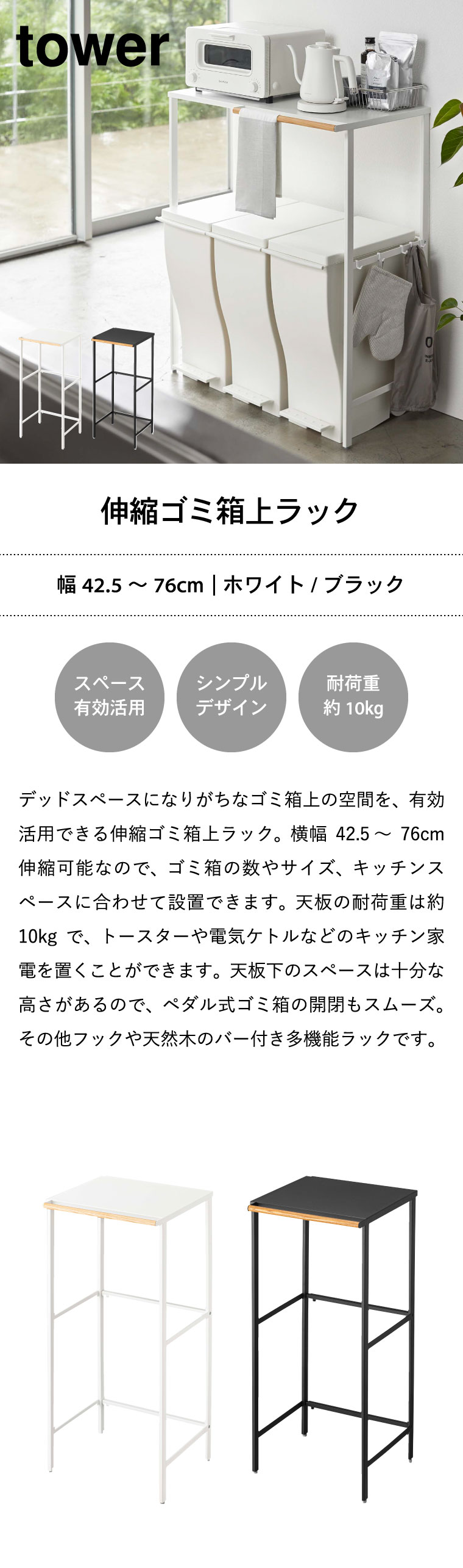 tower 伸縮 ゴミ箱上ラック タワー