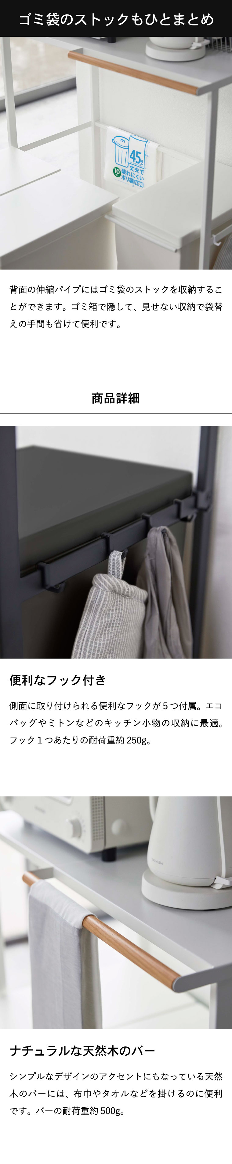 ●耐荷重: 天板:約10kg フック1つあたり:約250g バー:約500g