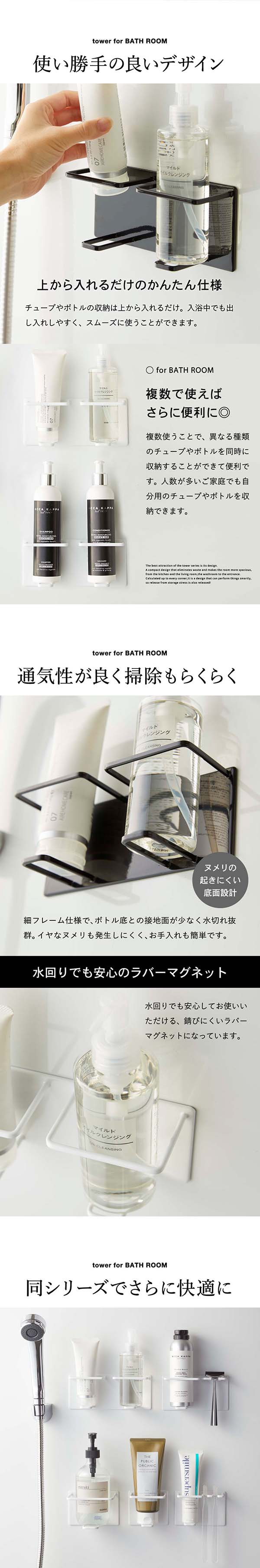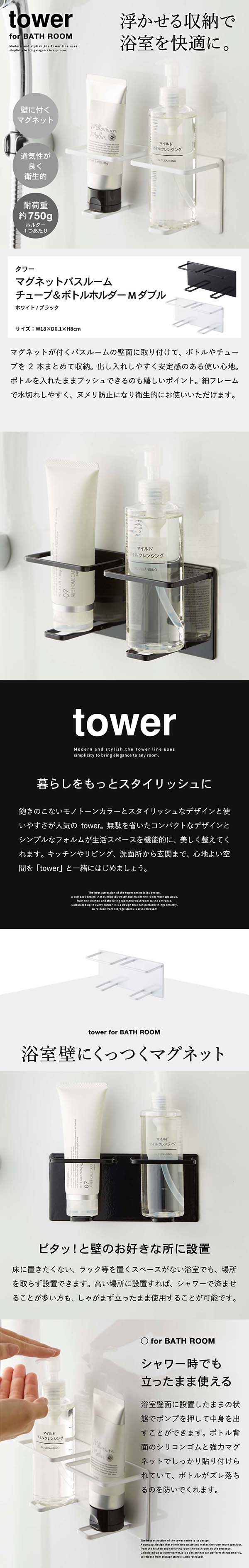 マグネットバスルームチューブ&ボトルホルダー タワー M ダブル