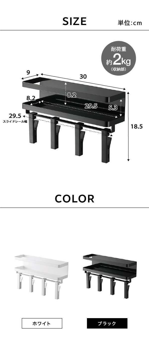 ●内寸サイズ: 収納部:約W29.5×D8.2×H8.2cm スライドレール幅:約W29.5cm