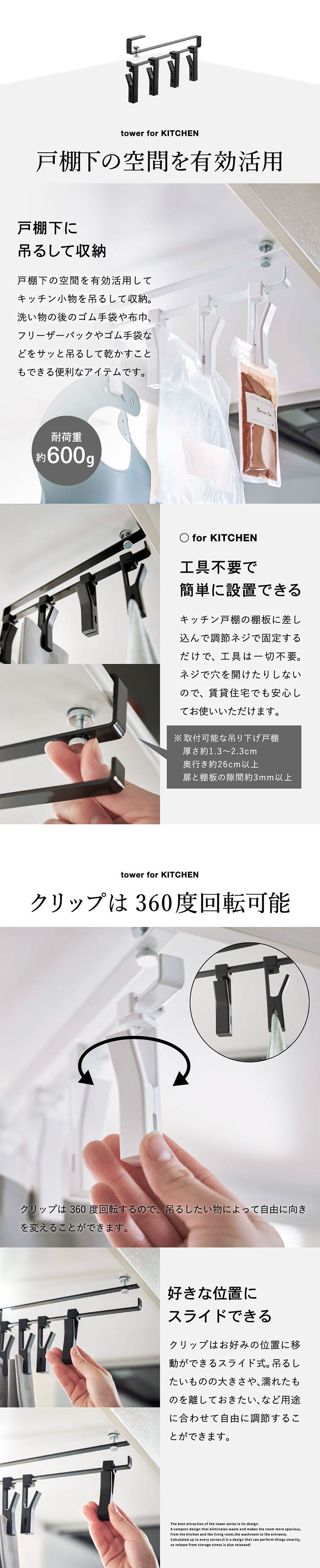 | ≫/ 【3】TOWER 戸棚下回転式クリップ 4連 |